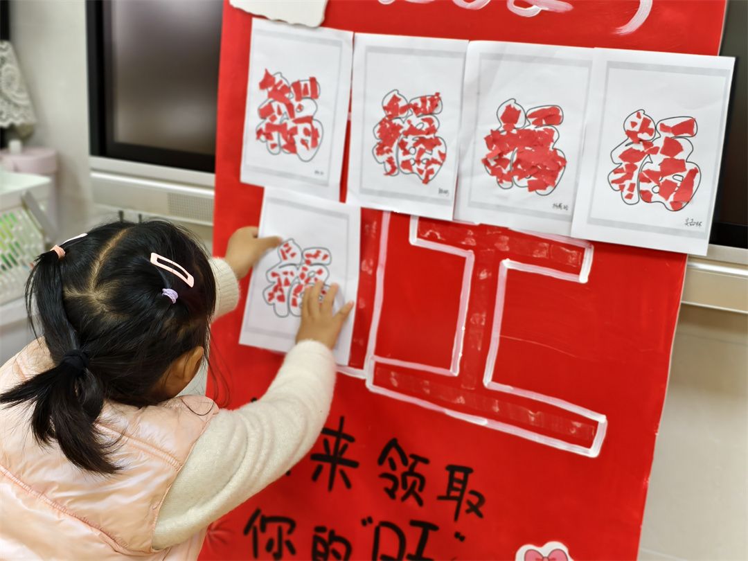 看,孩子们在认真制作福卡,每一张福卡都承载着他们的巧思与心意。