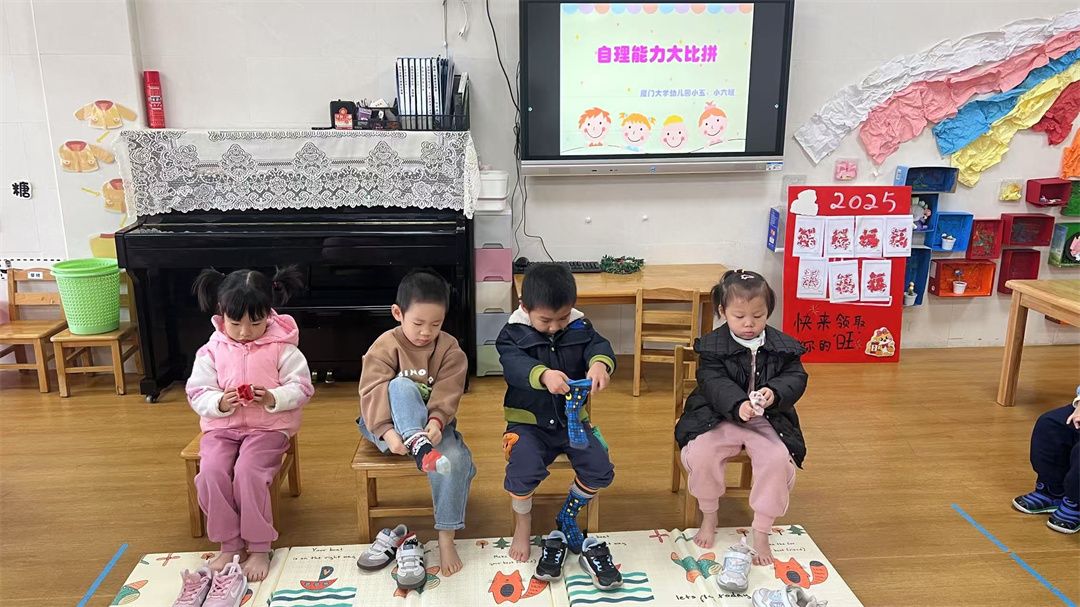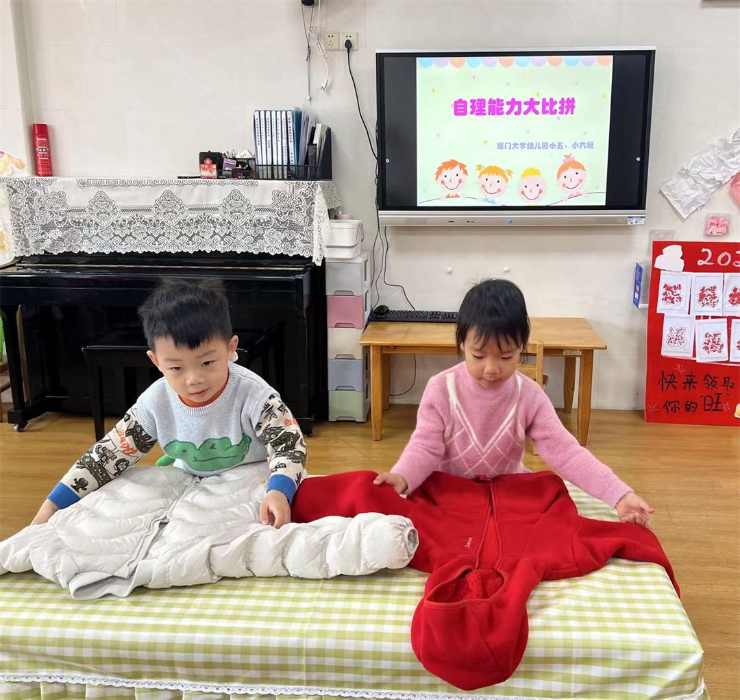 我会穿脱衣服、折衣服... ...瞧!小五班和小六班的宝贝们在自理能力比赛中展现出十足的自信。看着他们把外套折得整整齐齐,自豪的笑着、为自己拍起了小手... ...长大真好!