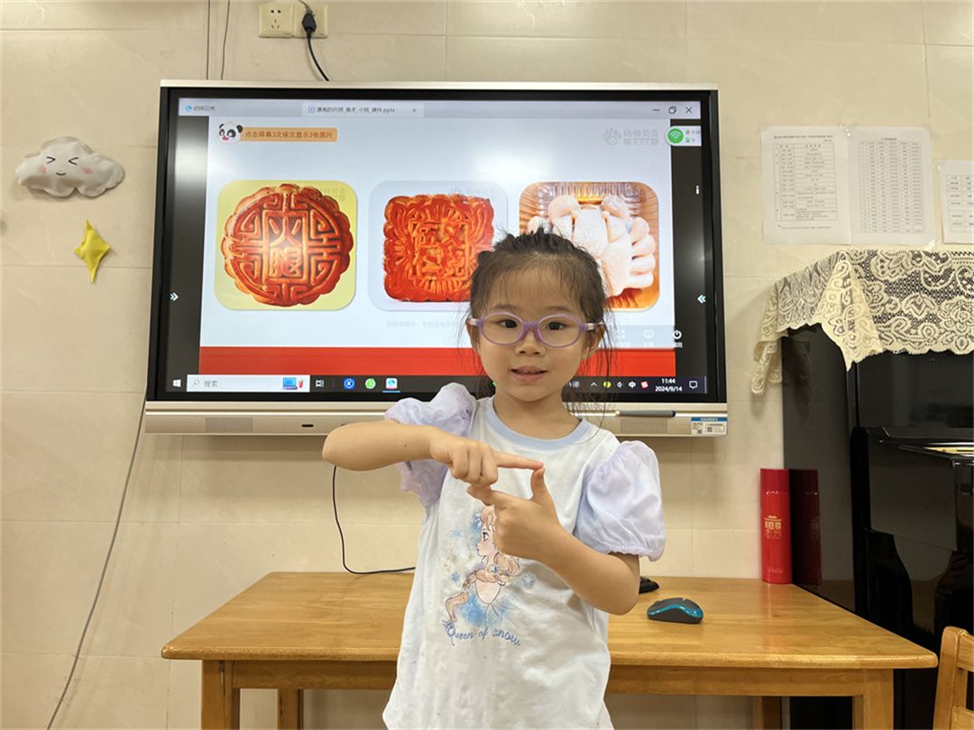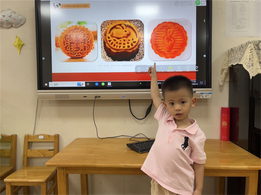 “月饼还有各种各样口味,他们的颜色都不一样!”