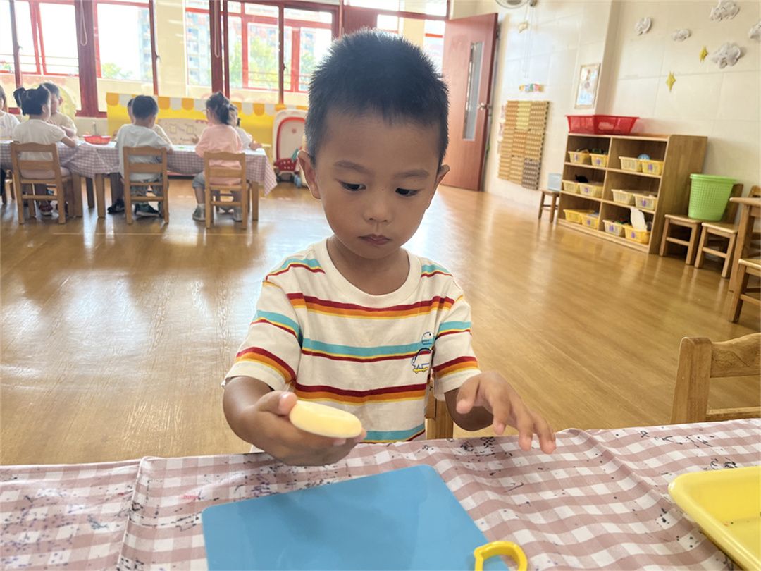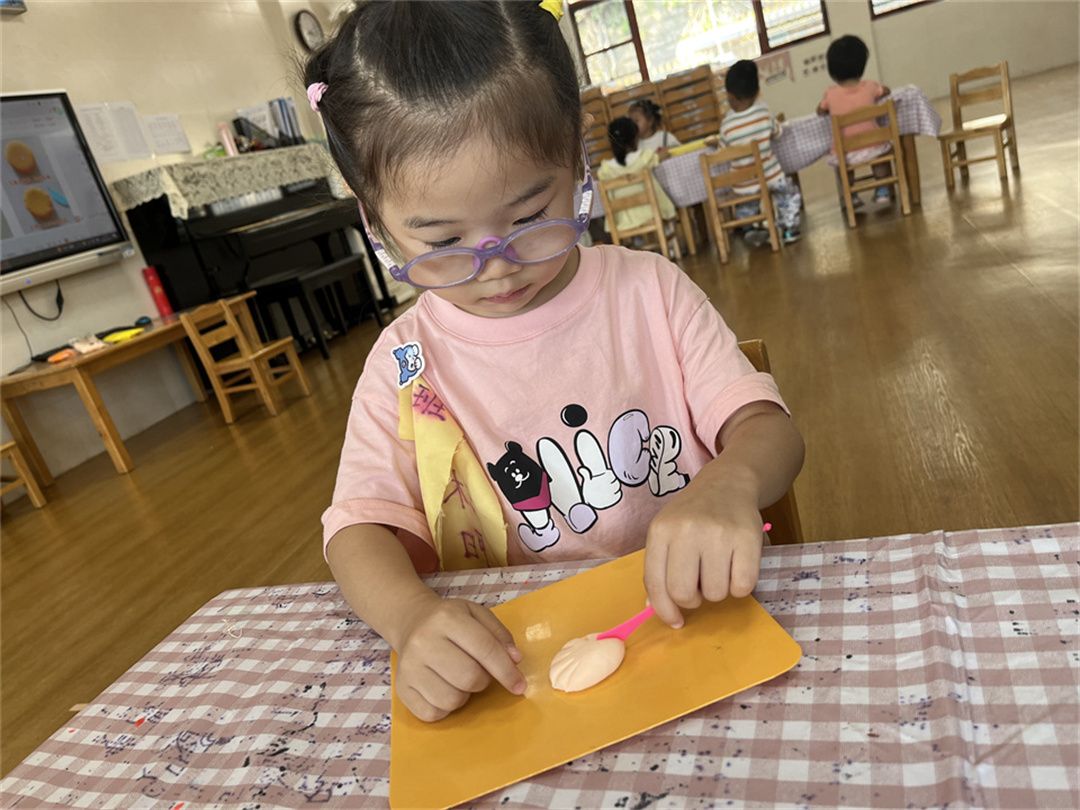 我们动起小小手一起来尝试用超轻黏土制作月饼吧!先搓圆圆,再轻轻压一压,接着用工具在旁边划出花纹,用可爱的模具在黏土上印出好看的图案!