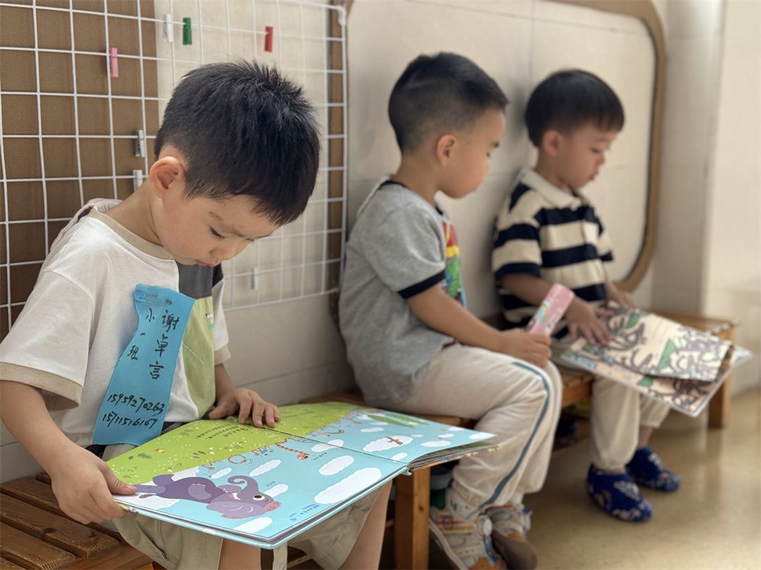 饭后我们也会安静的在阅读区,和我的好朋友一起,安安静静的分享我从家里带来的好看的绘本!