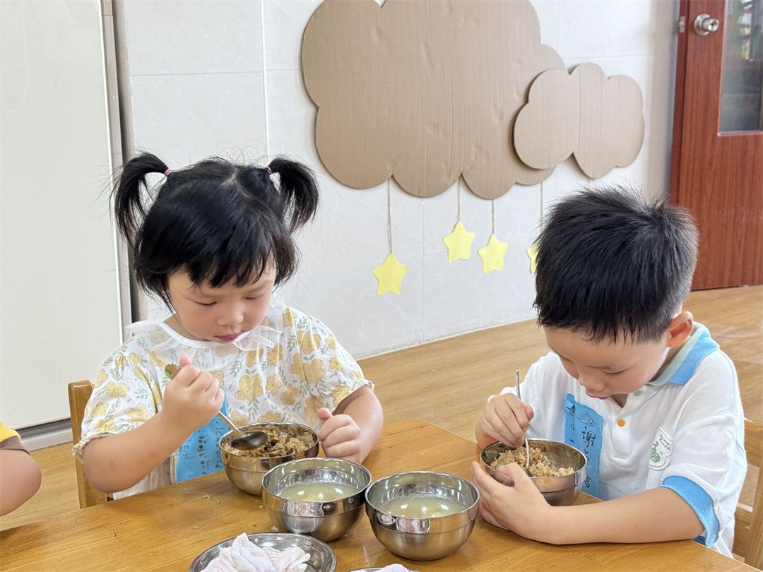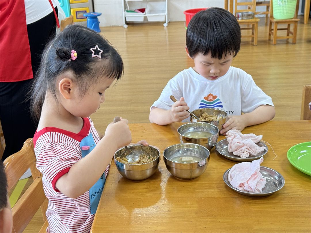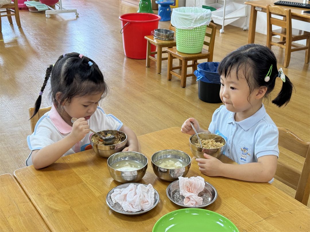 哥哥姐姐不需要老师喂饭啦,一口一口把饭菜吃光光啦!