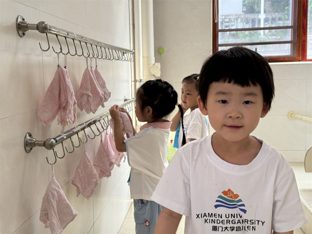 我现在是小班的哥哥姐姐啦,我自己可以喝水挂毛巾。