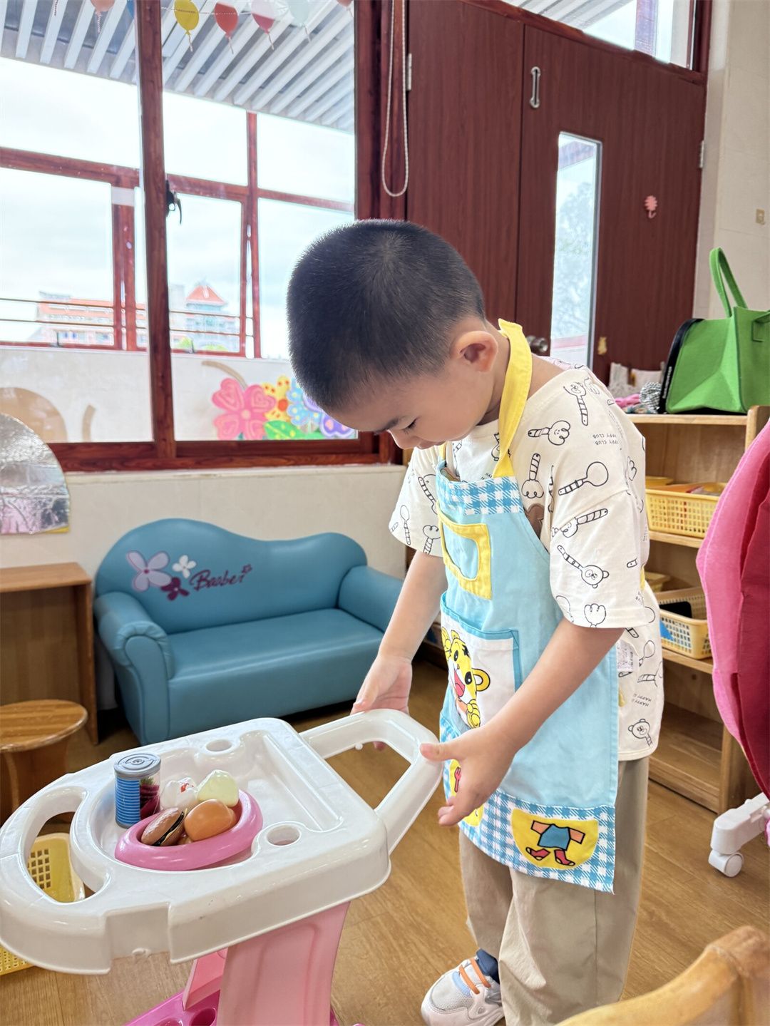区域时间到啦!快看这是我最喜欢的娃娃家,我在这里煮饭,请我的客人喝茶,来家里做客~