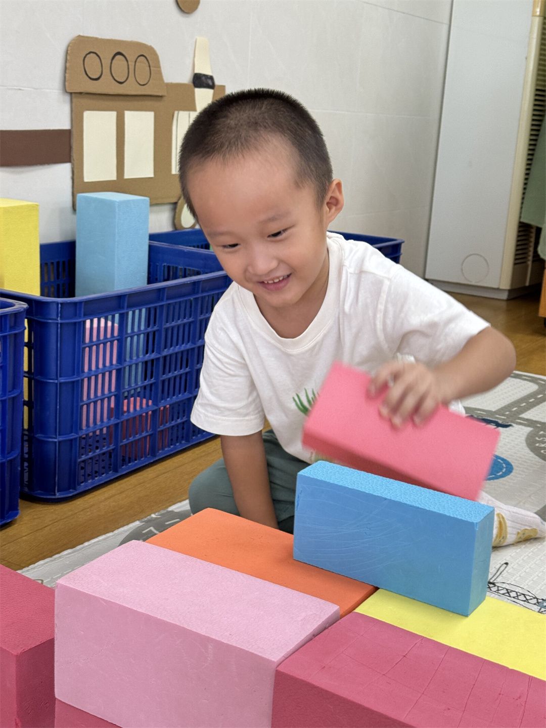 老师,我和我的好朋友会一起合作搭一个大房子!