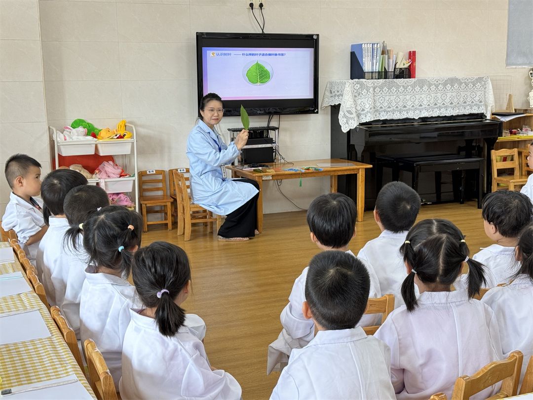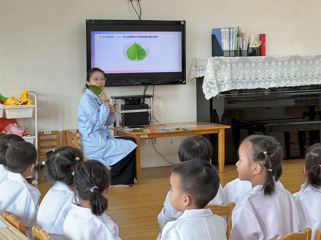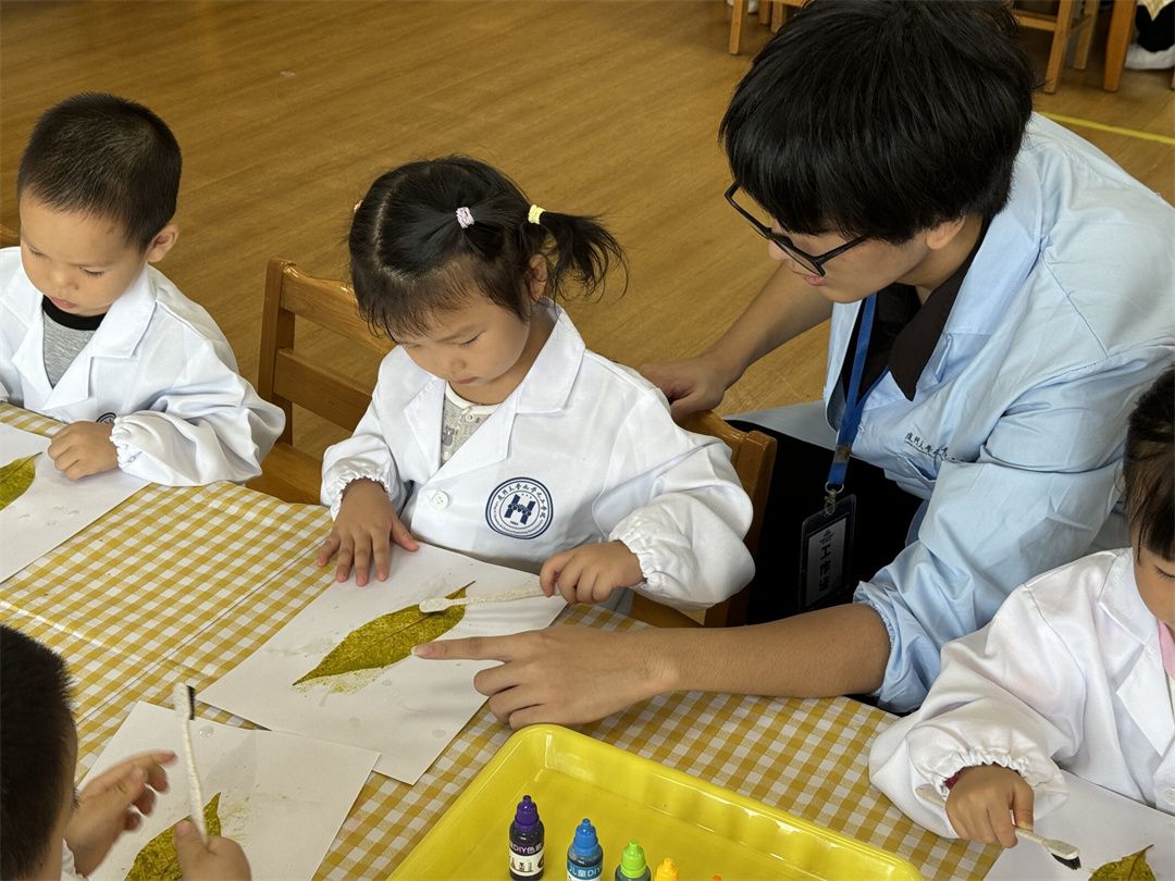 小朋友们仔细地观察着小小的树叶,有着专属于大自然的纹理。