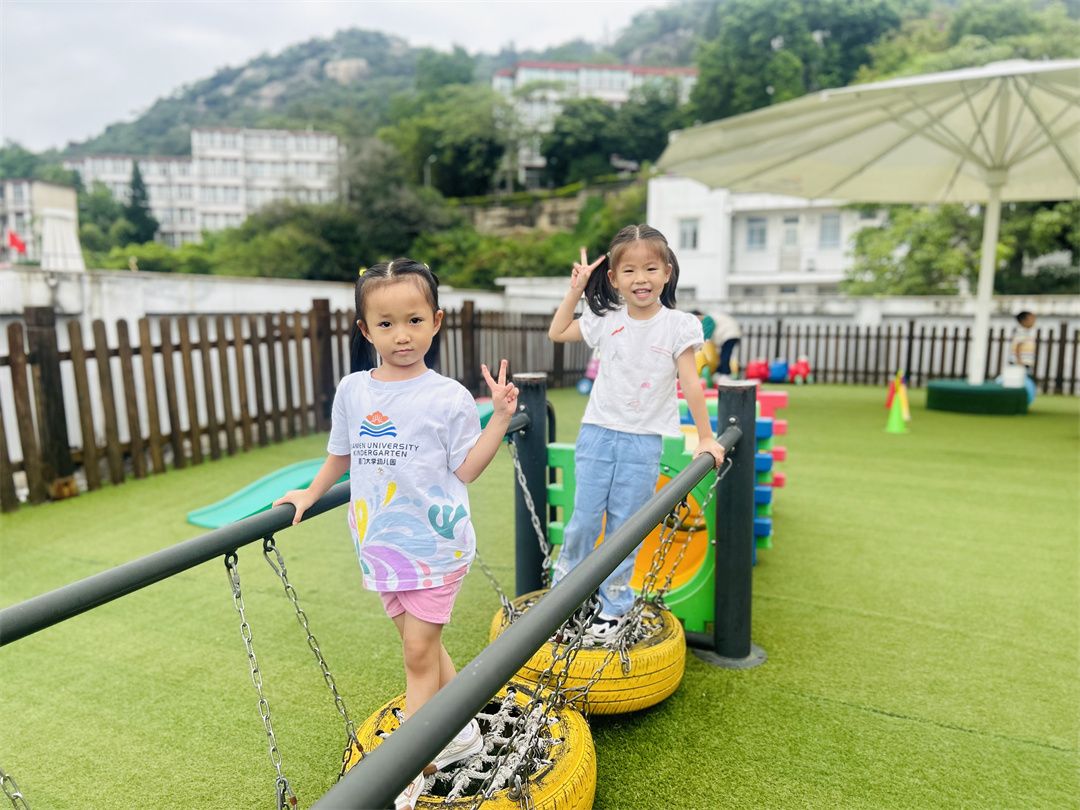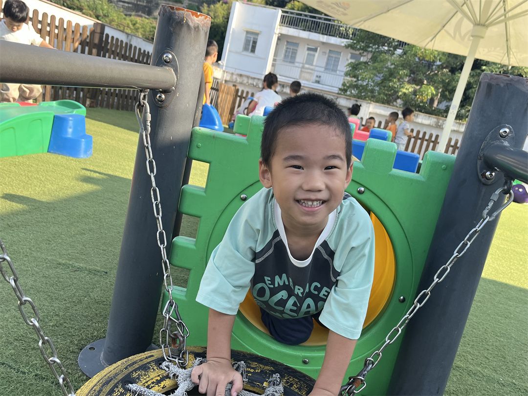 瞧!一旁的栈道和轮胎架上,宝贝们“翻山越岭”,勇敢地迎向一次又一次挑战!