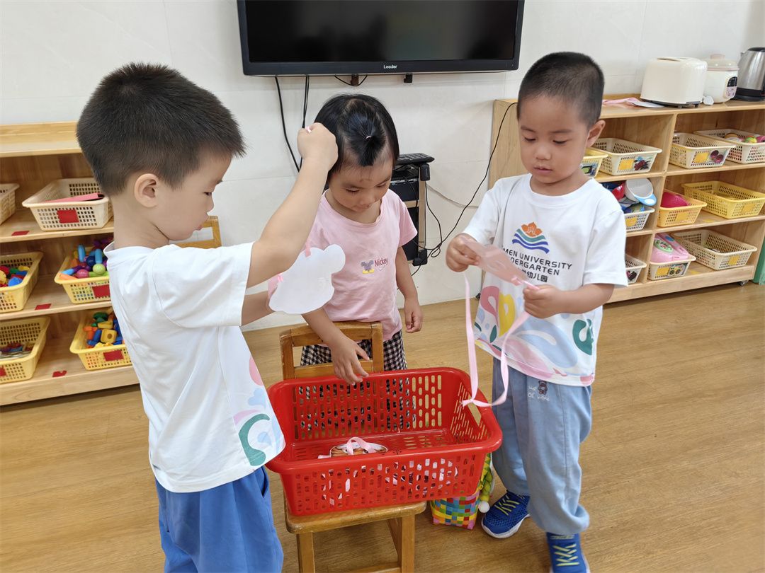 小朋友们开始忙碌起来,你帮我我帮你,装扮好自己想要扮演的角色,迫不及待地想要表演啦!