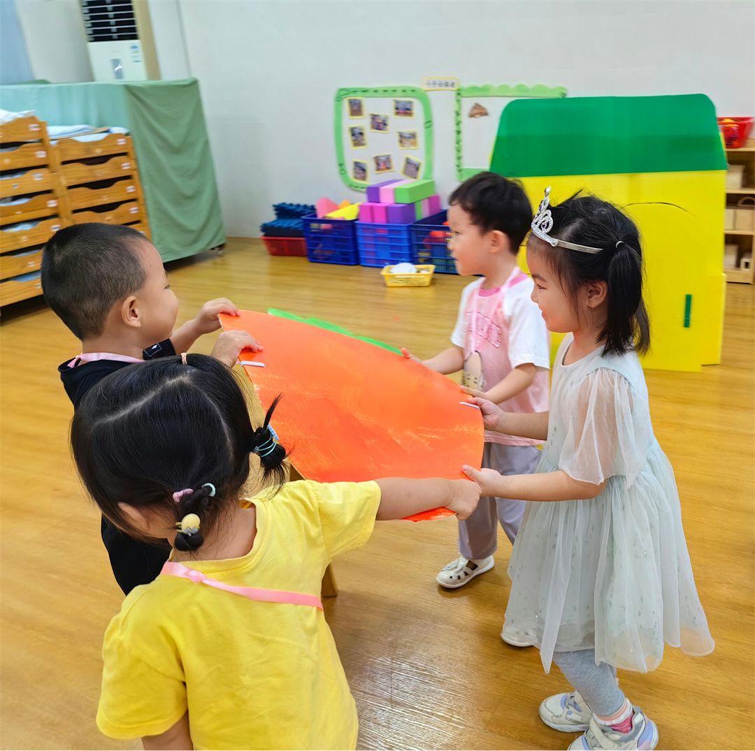 “嘿呦,嘿呦,拔萝卜,嘿呦,嘿呦,拔不动~”咦,这个故事好熟悉呀,是哪里传来拔萝卜的声音呀?哦,原来是小二班的小朋友们今天要玩《拔萝卜》的游戏呢!我们一起来看看。