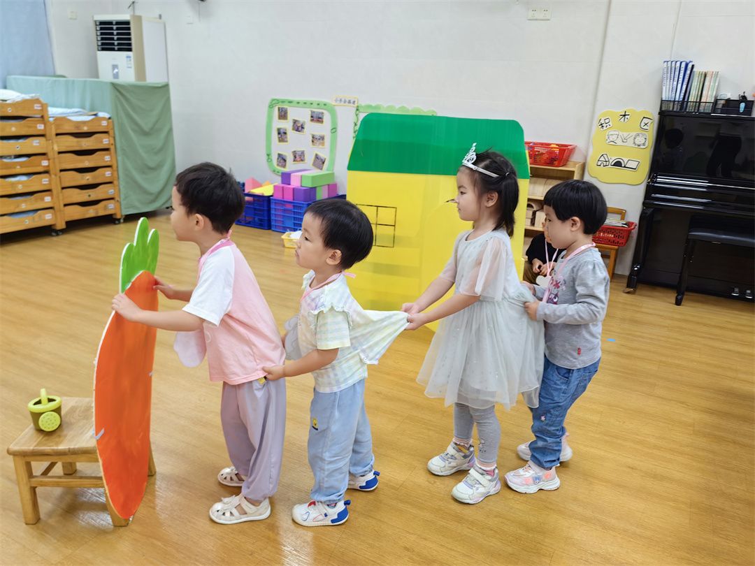 “来啦,来啦,我来啦,我们一起来一起拔萝卜!”