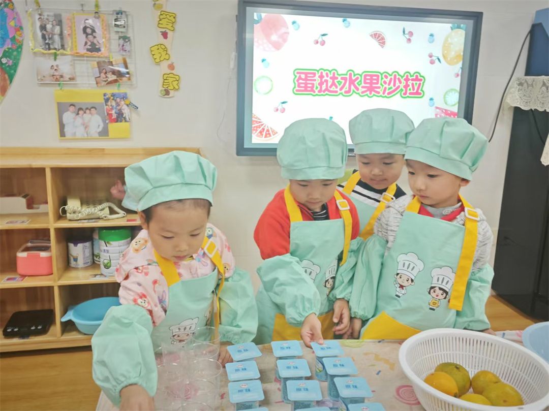 在这个阳光明媚的下午,小七班的小朋友们迎来了一次有趣的主题活动——制作美味水果沙拉。
