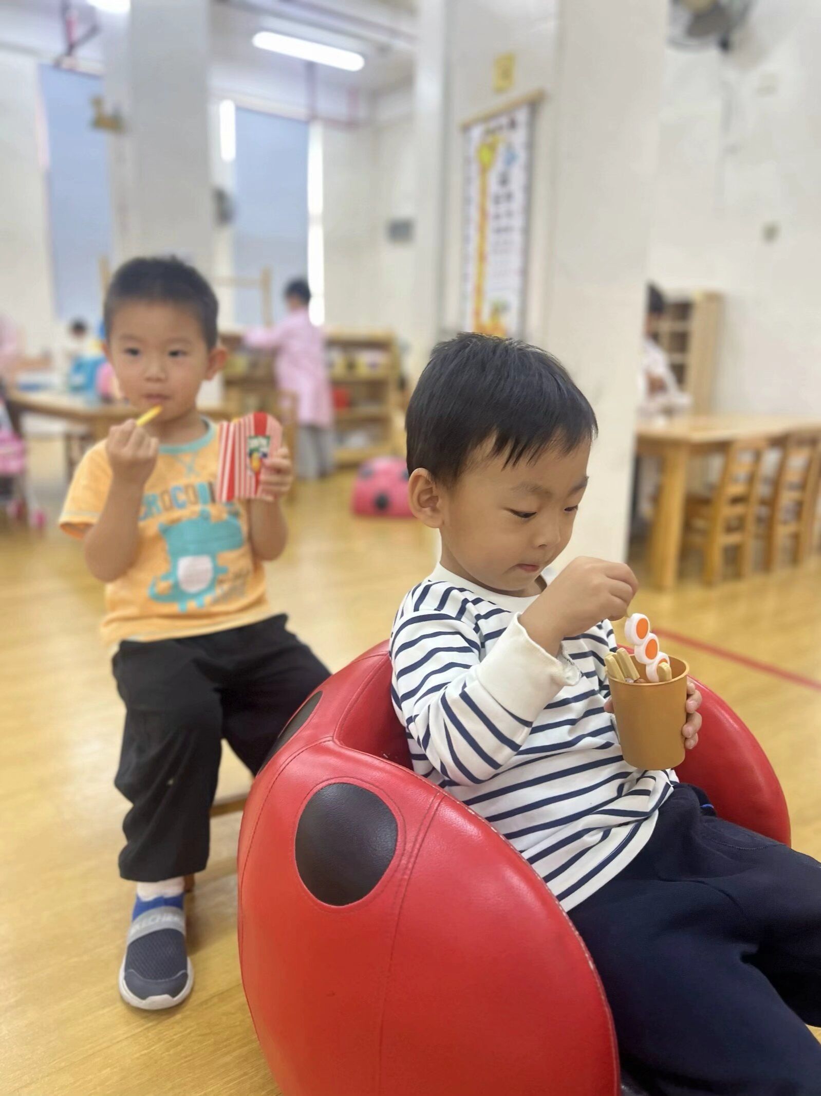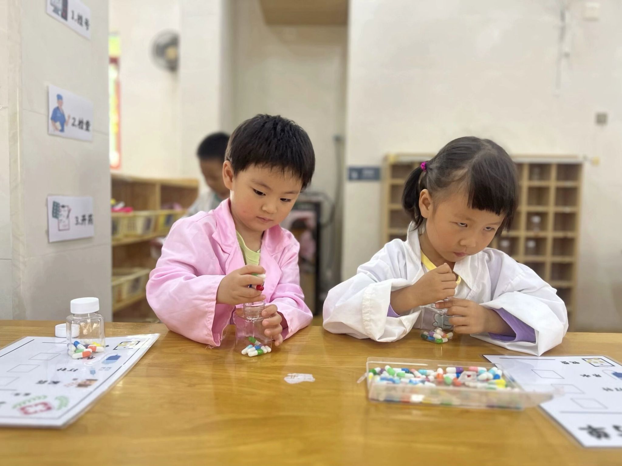 角色游戏一直是宝贝们最喜欢的游戏,逼真的情景再现,萌萌哒的角色扮演,此起彼伏的欢声笑语,小四班的宝贝们真沉浸在角色游戏中让我们一起去看看吧。