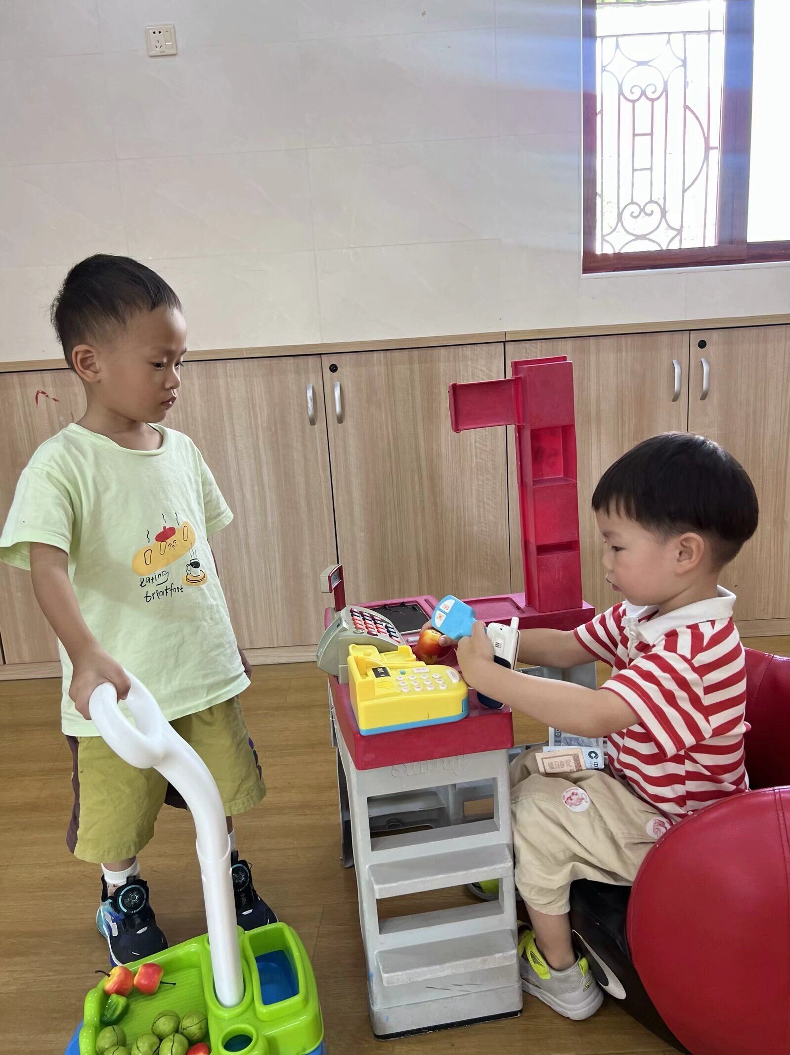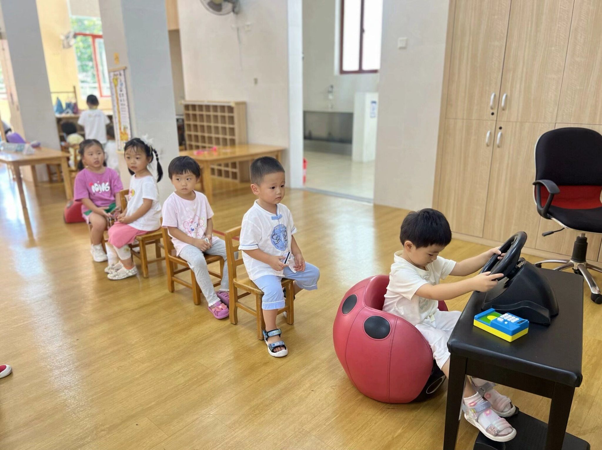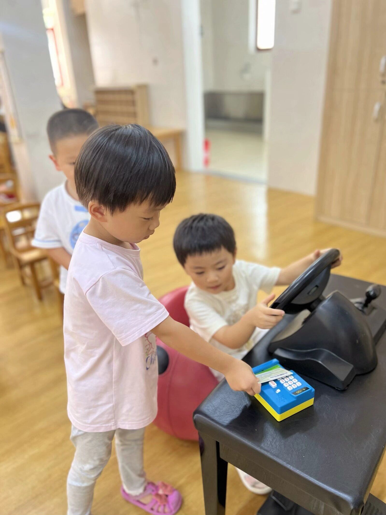 “滴滴,超市站到了,下车请注意安全。”在公交车师傅的玩心提示下,宝贝们来到超市。
