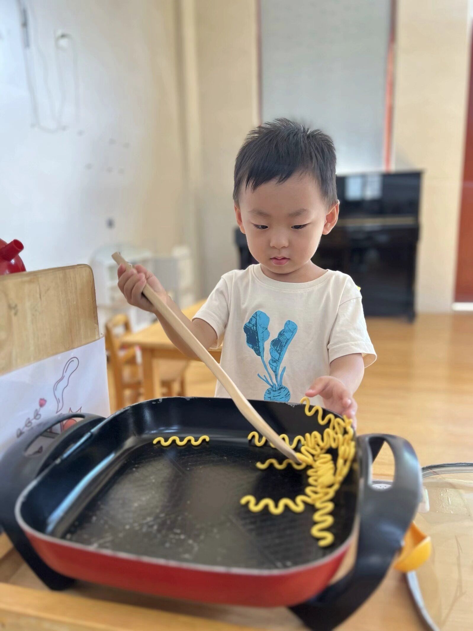 “今天我要给大家煮好吃的饭菜。”