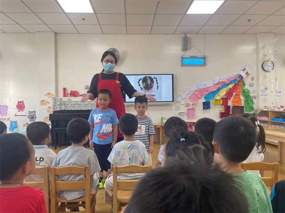 通过前期的理发店经验交流,宝贝们初步了解了理发店的人和物,并且和同伴一起讨论了班级理发店需要准备什么材料。根据孩子们的意愿,老师也加入了筹备理发店的队伍,对宝贝们进行了岗前培训。