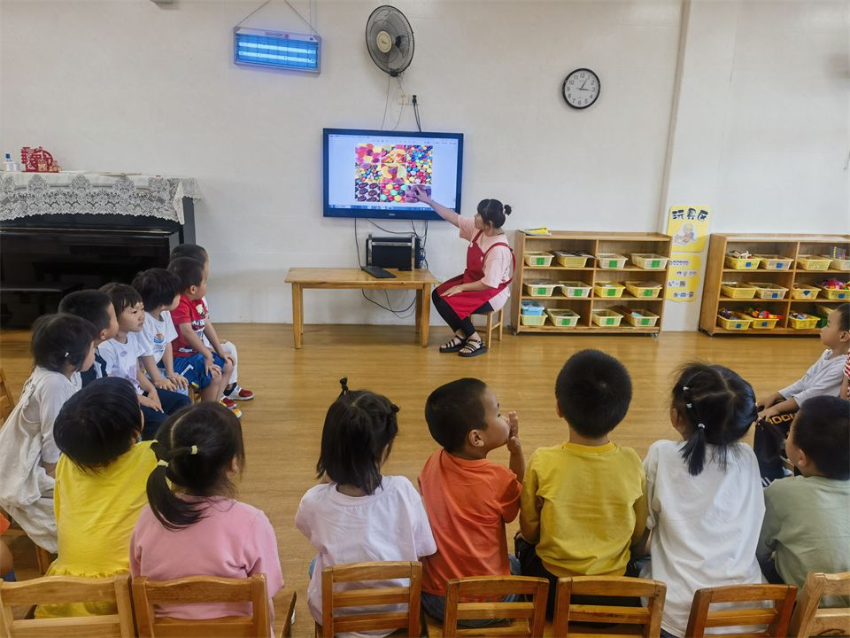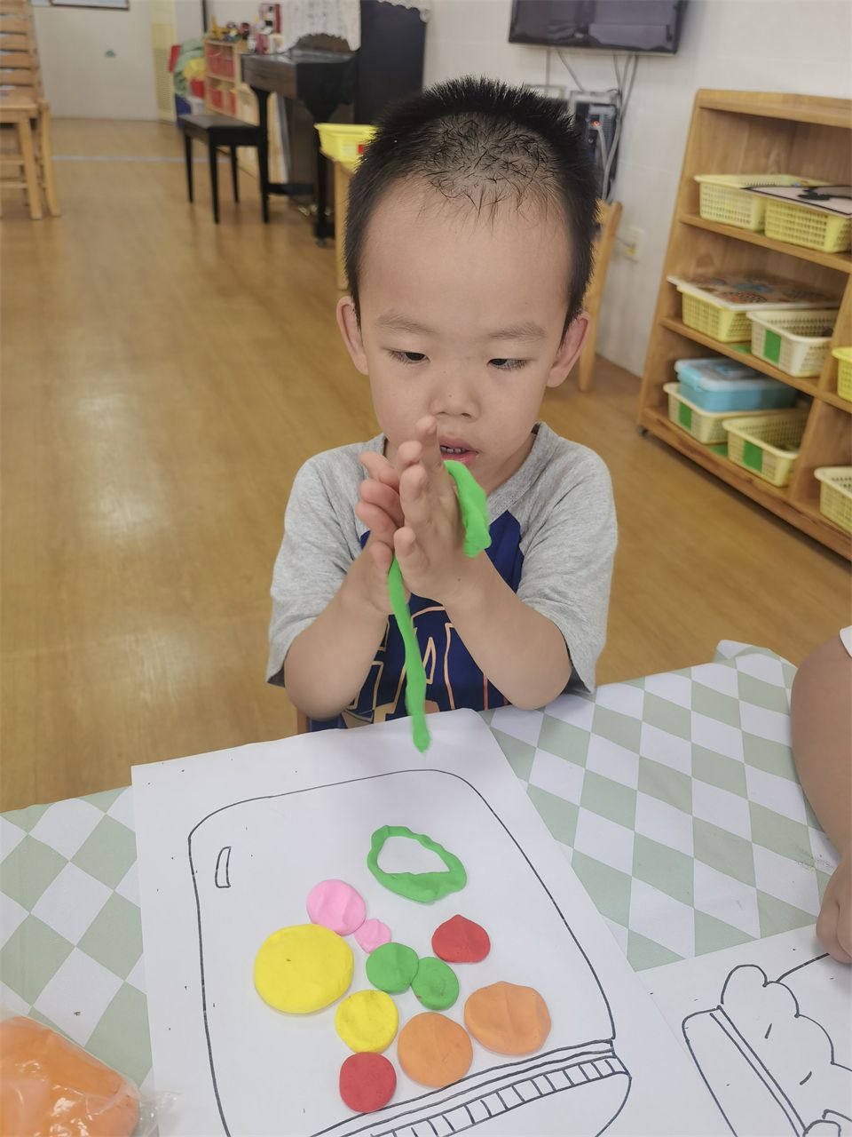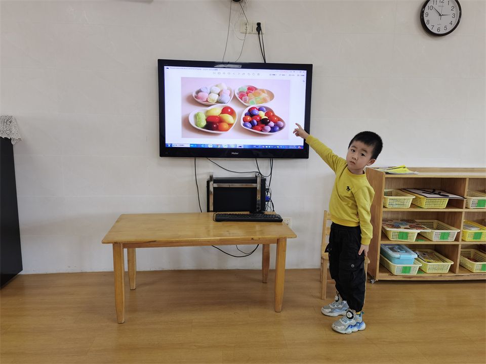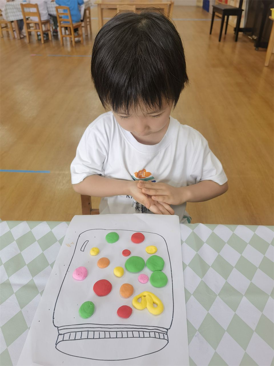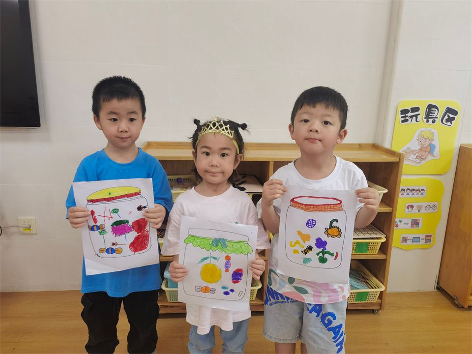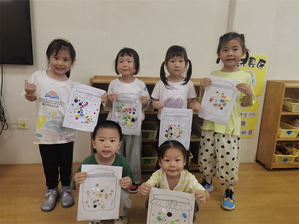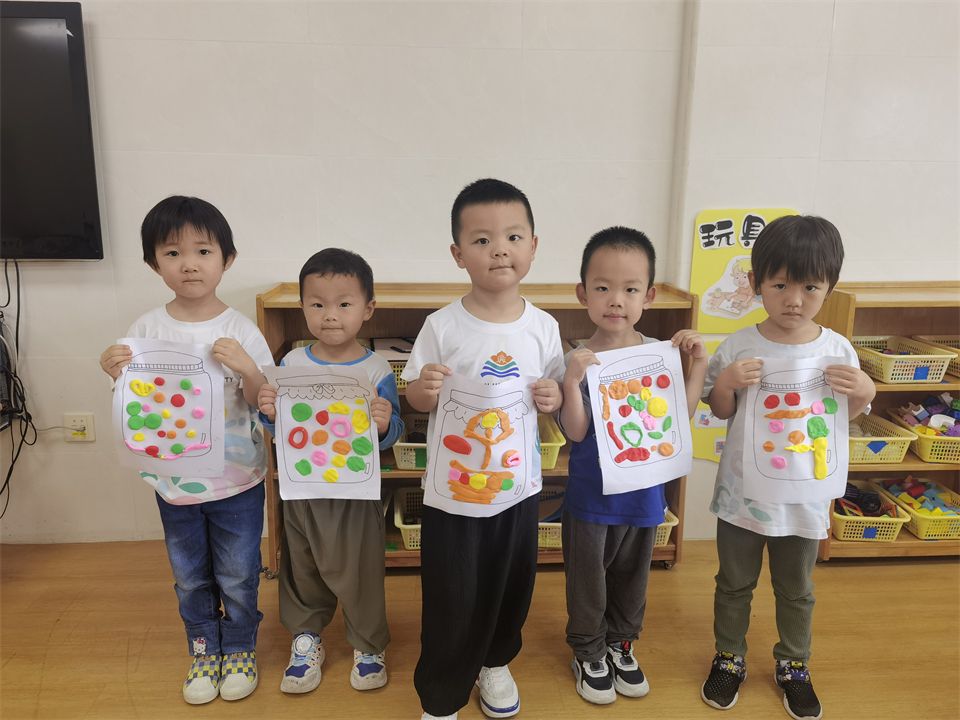 不一会,小朋友们的“糖果罐”里装满了各式各样色彩艳丽的美味糖果。