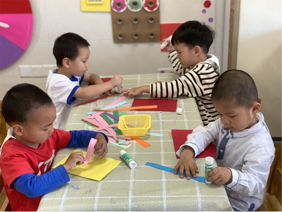 在欣赏分享作品过程中,宝贝们发现了哥哥姐姐作品有的用是相近色,有的是对比色,颜色有冲突更加好看。