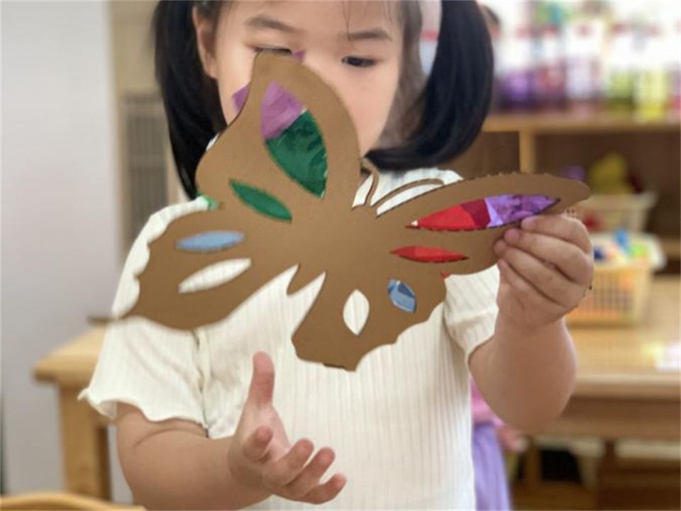 剪一剪、贴一贴、串一串,好看的玻璃纸窗帘就做好了。