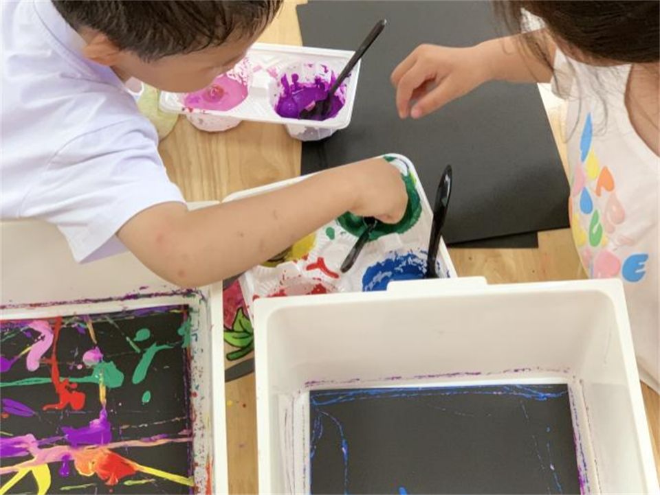 简单的工具,充满无限探索的可能,每个宝贝的心中都有一幅蓝图,他们在色彩的世界里尽情的享受和创作。