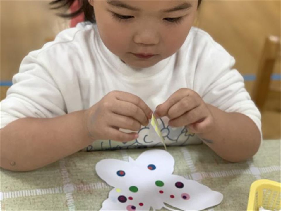 向草间弥生大师学习一起用彩色圆点装饰蝴蝶,又大有小,有疏有密,每一只蝴蝶都翩翩起舞.