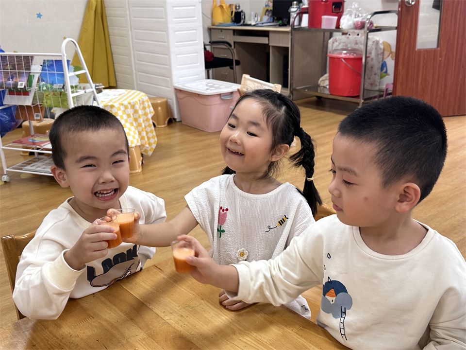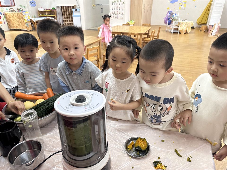 了解完各种蔬菜以后到了宝贝们最激动的环节,蔬菜榨汁和品尝贝贝南瓜的时刻,宝贝们已经迫不及待的准备开始啦~