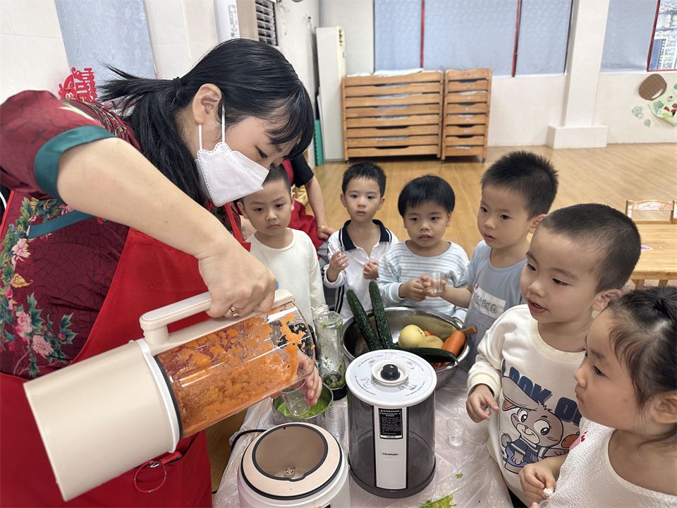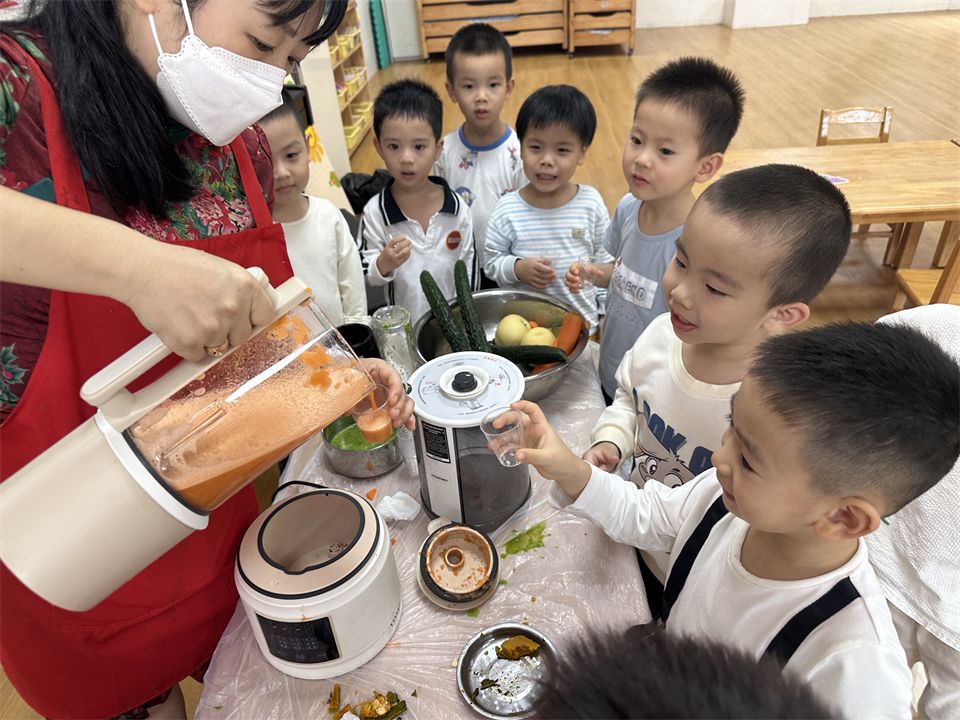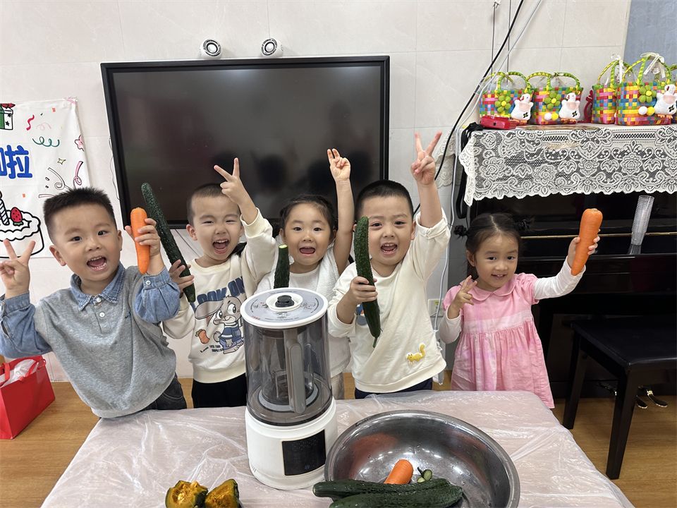 通过此次活动,宝贝们不仅了解了各种蔬菜,还知道蔬菜汁营养丰富,能提高人体免疫力,并要做一个爱吃蔬菜的好宝宝~