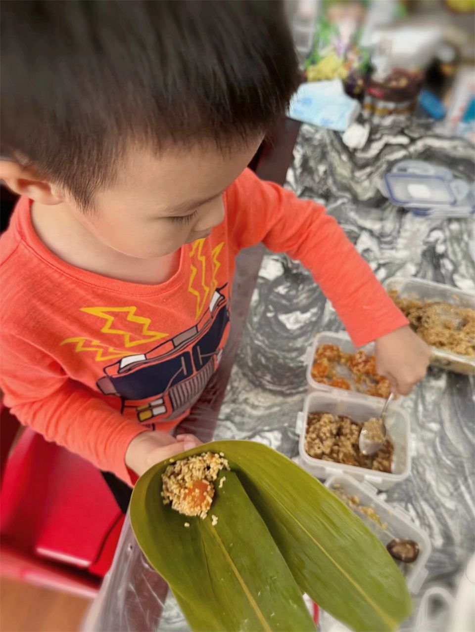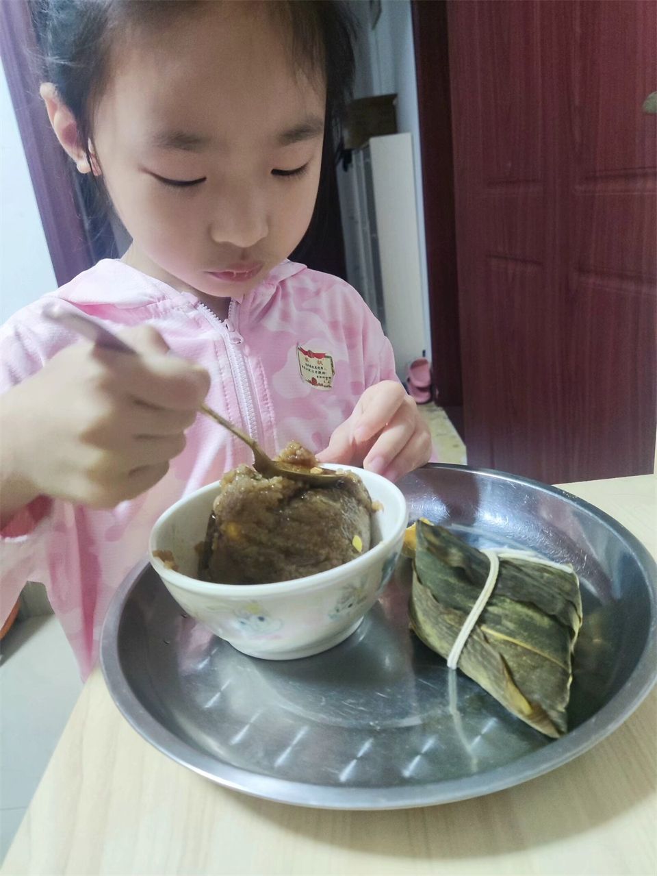 哇!萌娃们在园掌握了包粽子的技术后,纷纷在家中大显身手,一个个精致的粽子在小手中诞生,快快和爸爸妈妈们一起品尝我们的手艺吧!