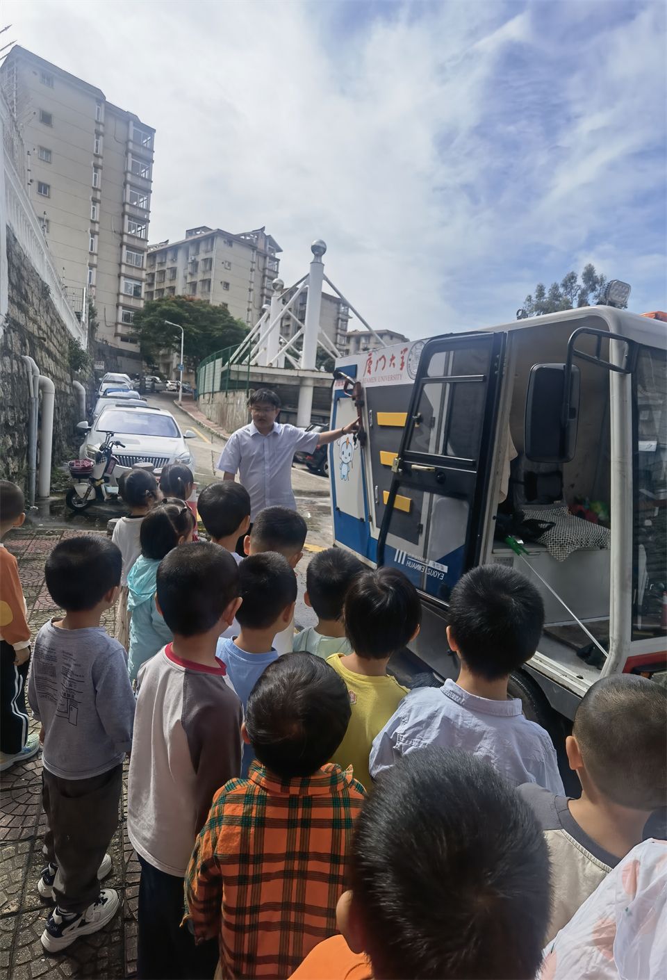 还利用我们厦大的社区资源,让孩子实地了解一些服务于我们厦大的一些特殊车辆。