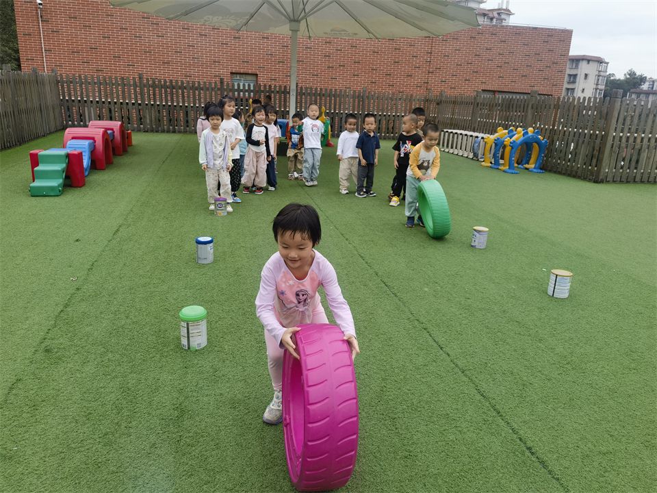 轮胎在孩子们眼中是一种有趣的玩具,在玩轮胎这个游戏中,激发了孩子们的想象力和创造力,同时也锻炼了他们的平衡力和身体协调力。