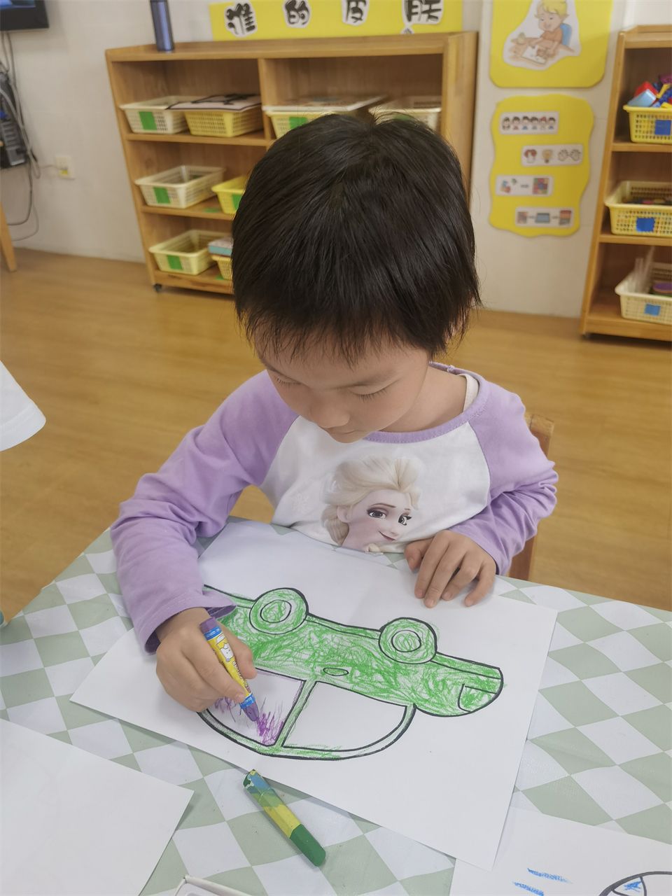 孩子们通过剪贴,拓印,涂色等多种方式,为小车穿上美丽的衣服,一辆辆独特小车就诞生啦!