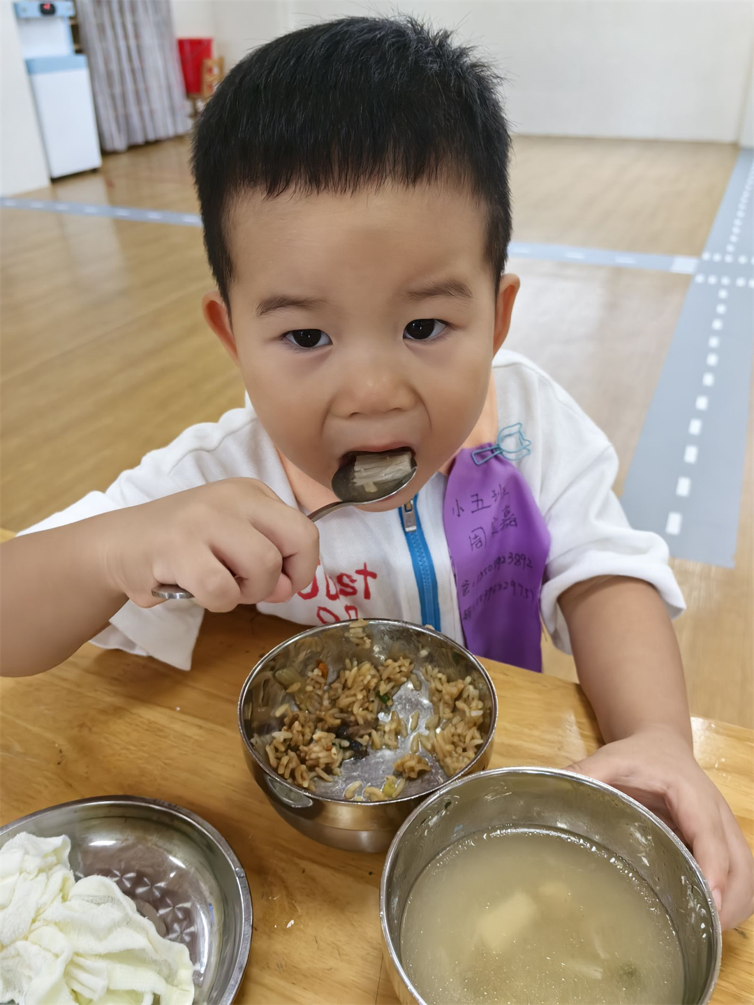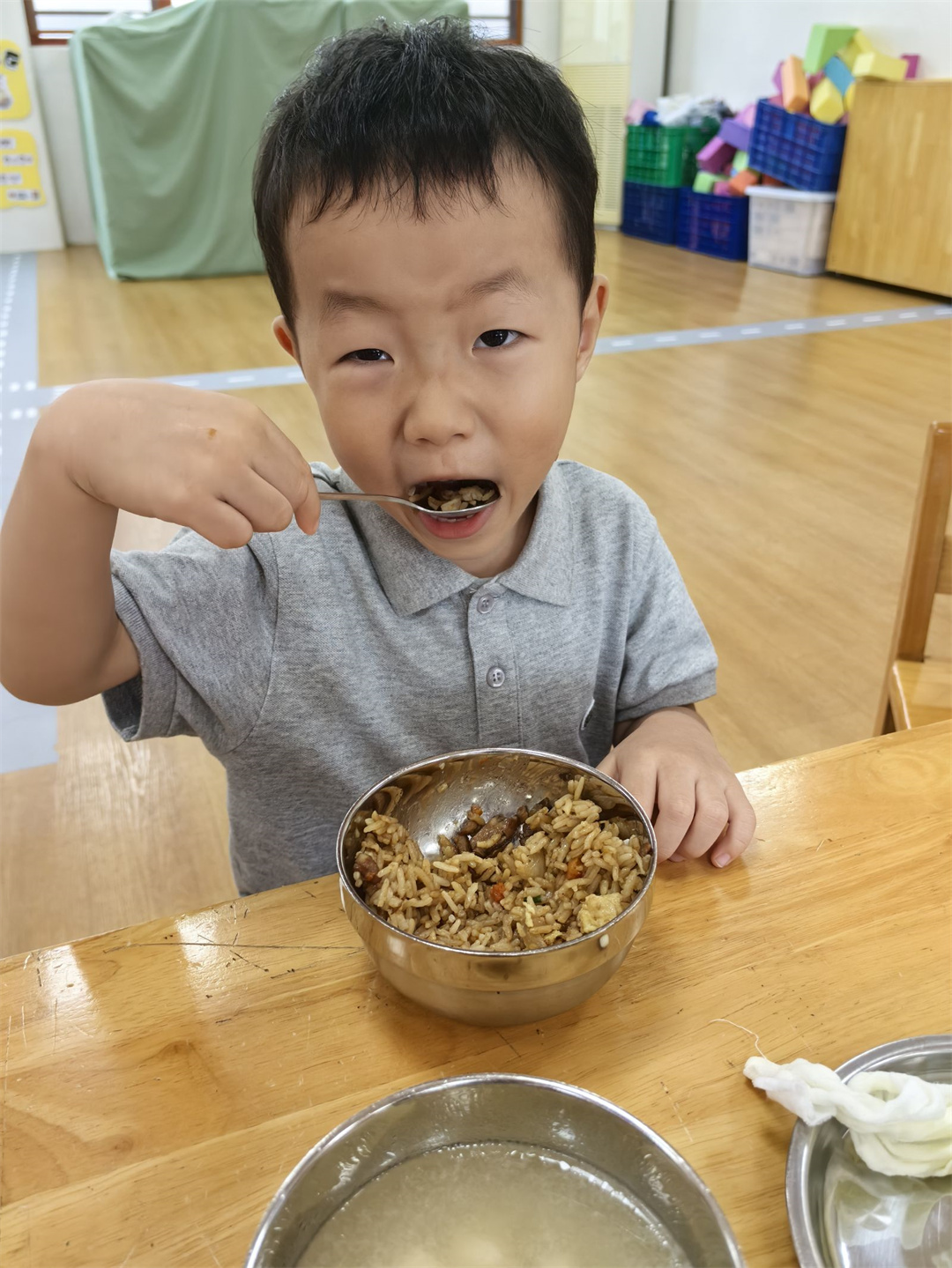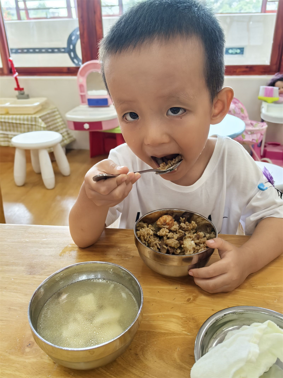 香香甜甜的饭菜是我的最爱,瞧,我都能一口一口吃光光。