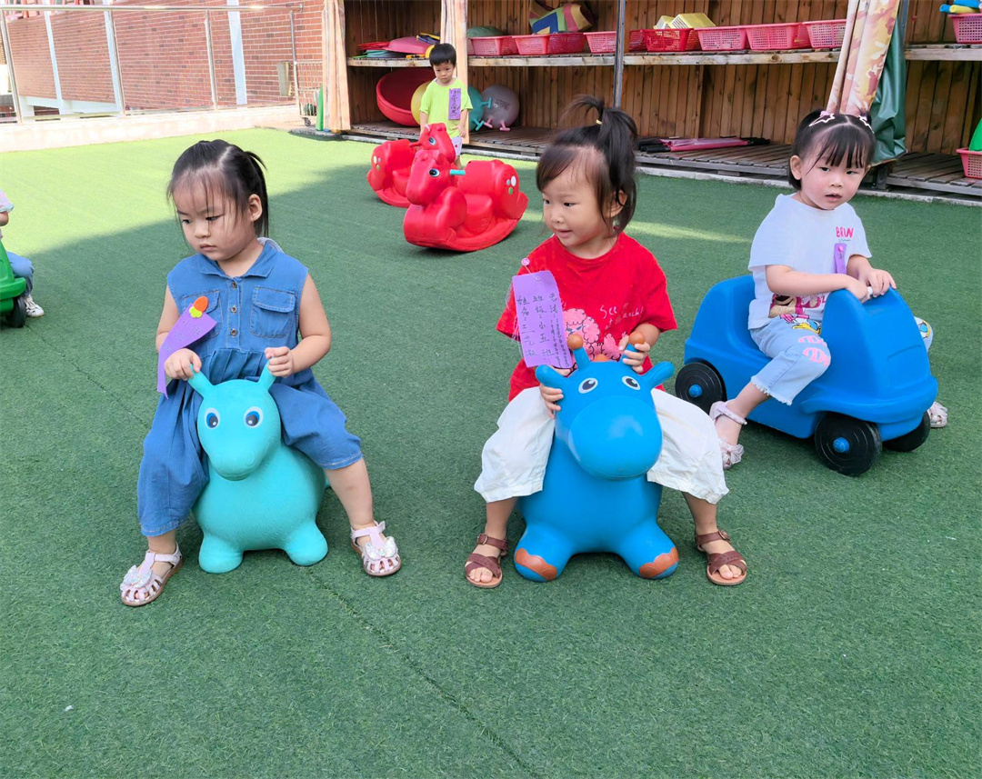 好玩的花花车,弹力小羊,摇摇马小朋友们欢快地玩乐着,就像一群充满活力的小精灵。