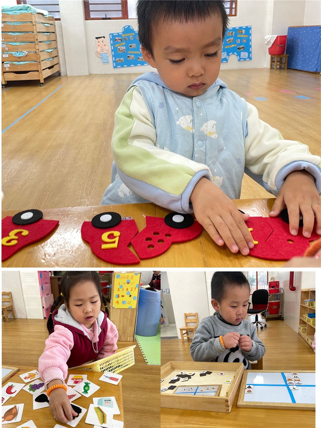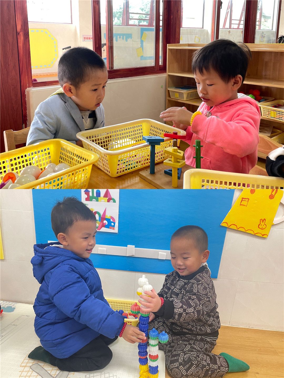 充满魔力的数学区给了宝贝们一把开启智慧大门的金钥匙。咦,是什么让宝贝们眉头紧锁?原来是宝贝们正在思考和探索数学的乐趣。