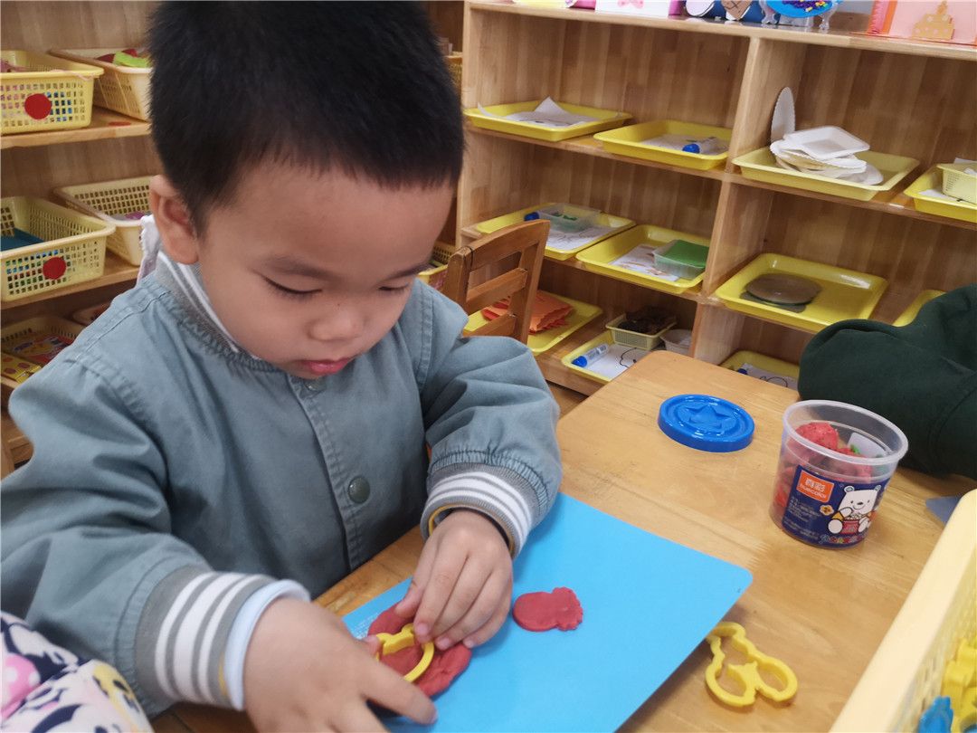 “我在用橡皮泥做出可爱的小饼干哦!”