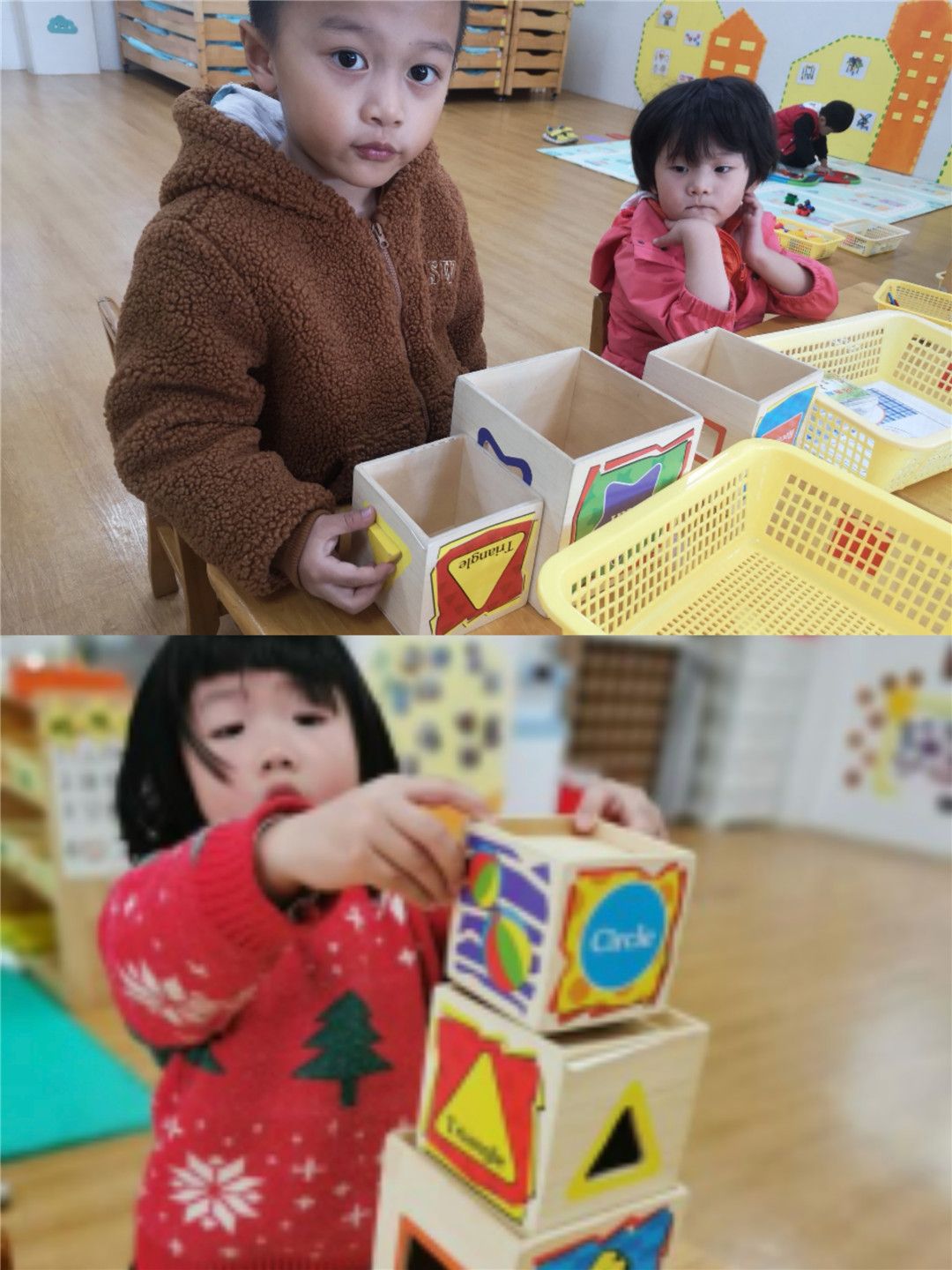 对于图形找家的玩具,聪明的小朋友们发现了不同的玩法哦。