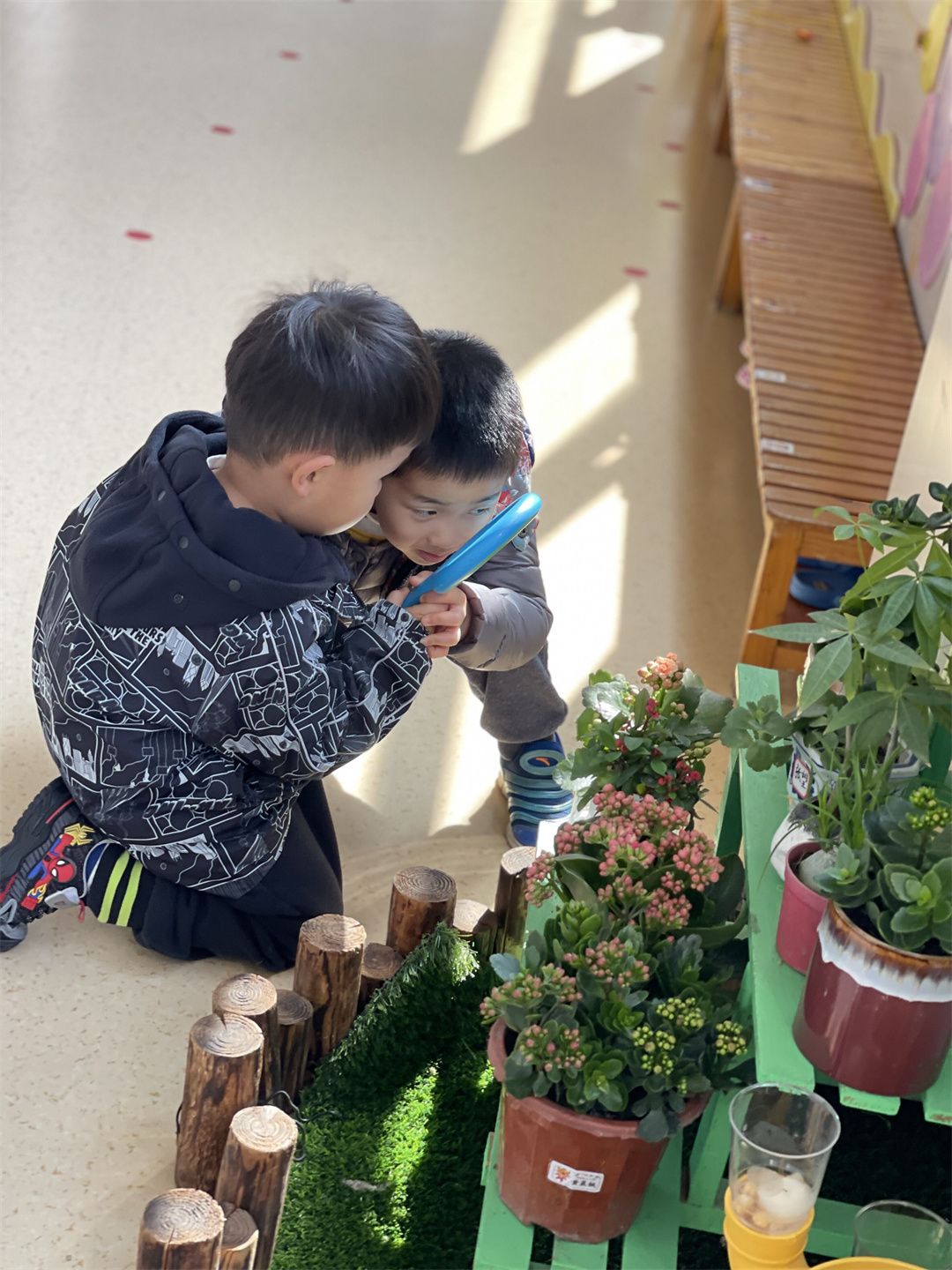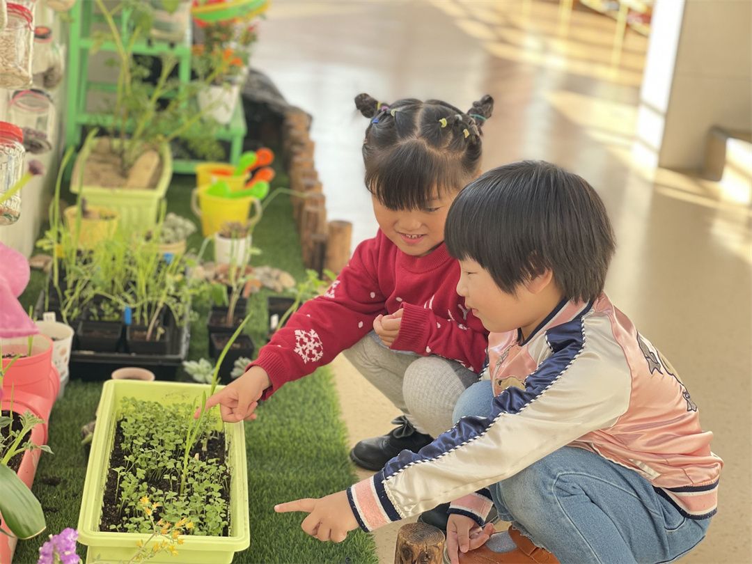 和熙的阳光、碧绿的草地、绚丽的花朵,你闻到春天的气息了吗?班级植物角的花、草也都长高啦!你好呀,春天!