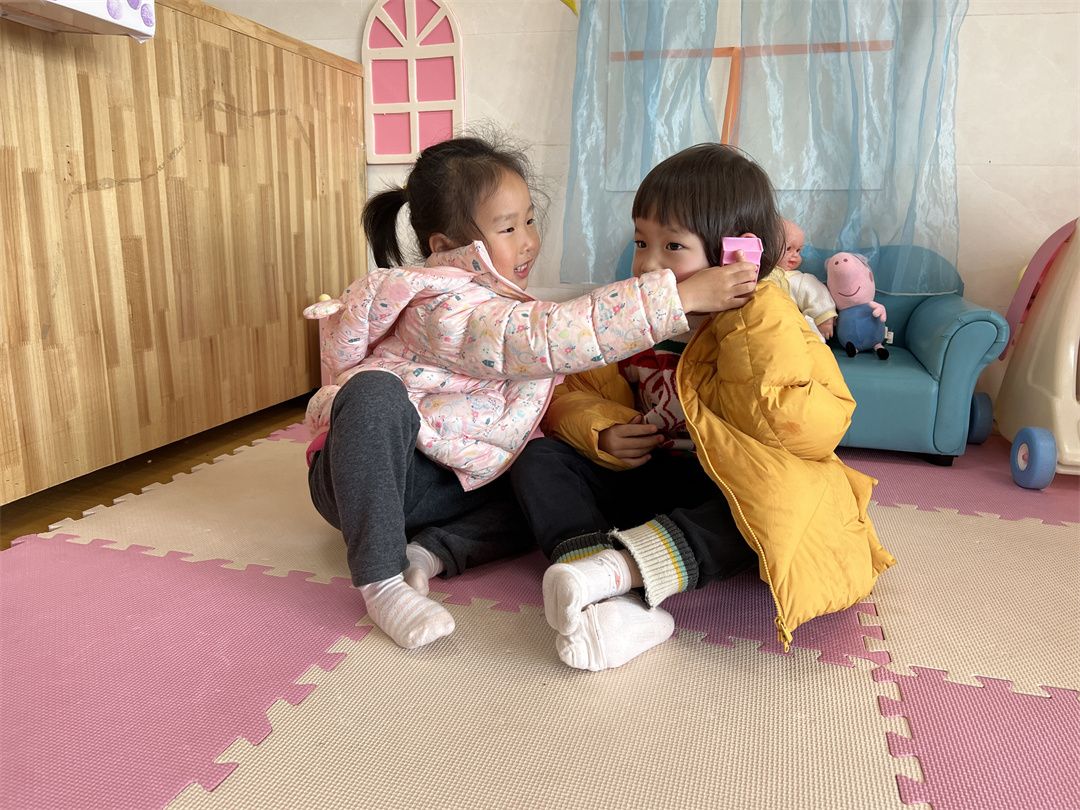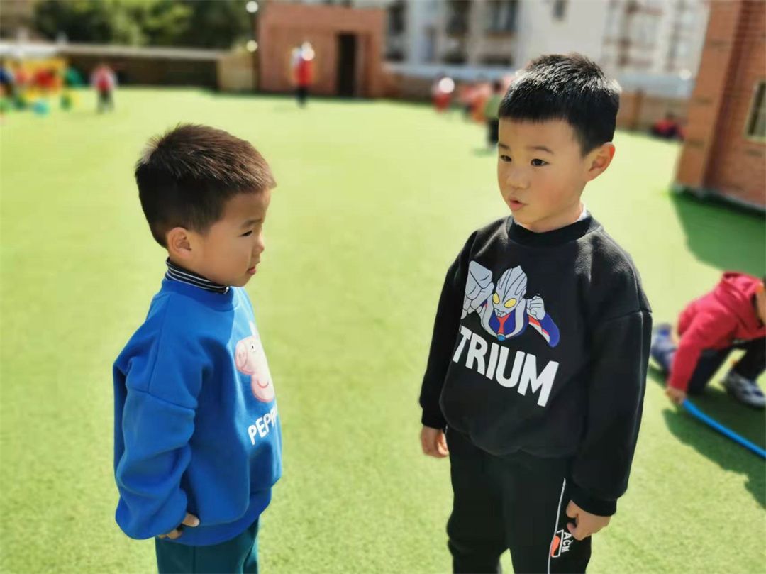 萌宝和小伙伴正商量着一起哪儿玩呢!
