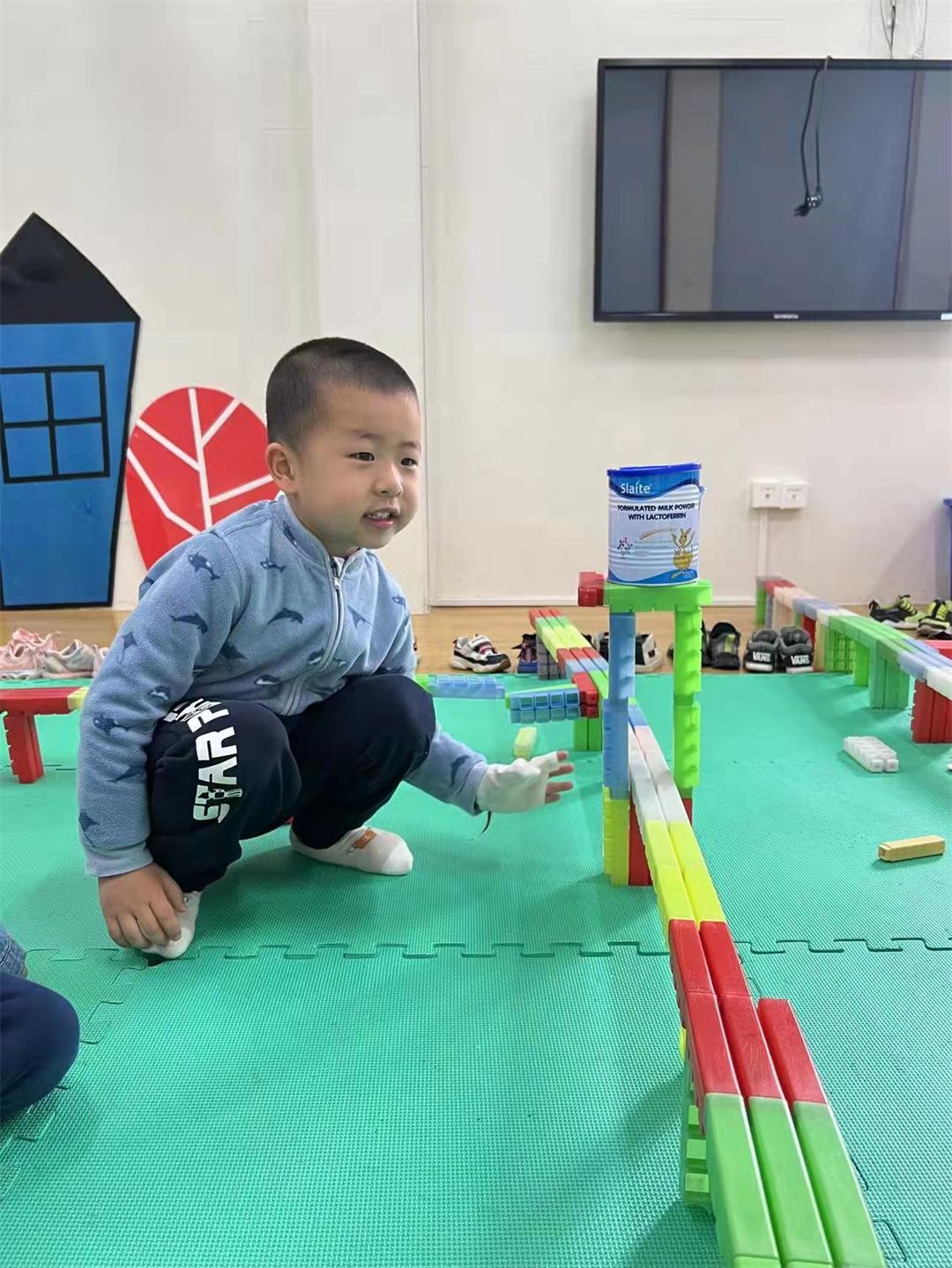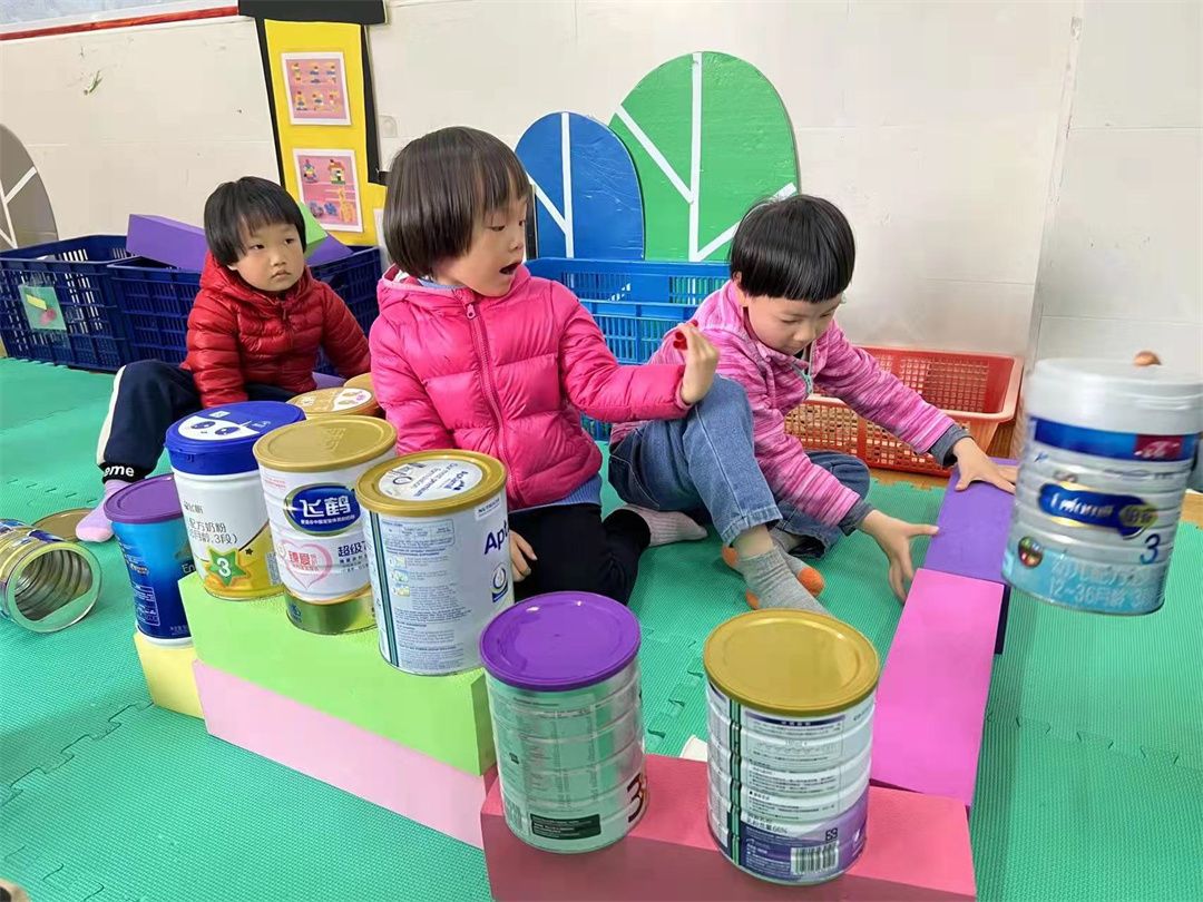 瞧!用积木和奶粉罐搭建的奶粉加工厂。