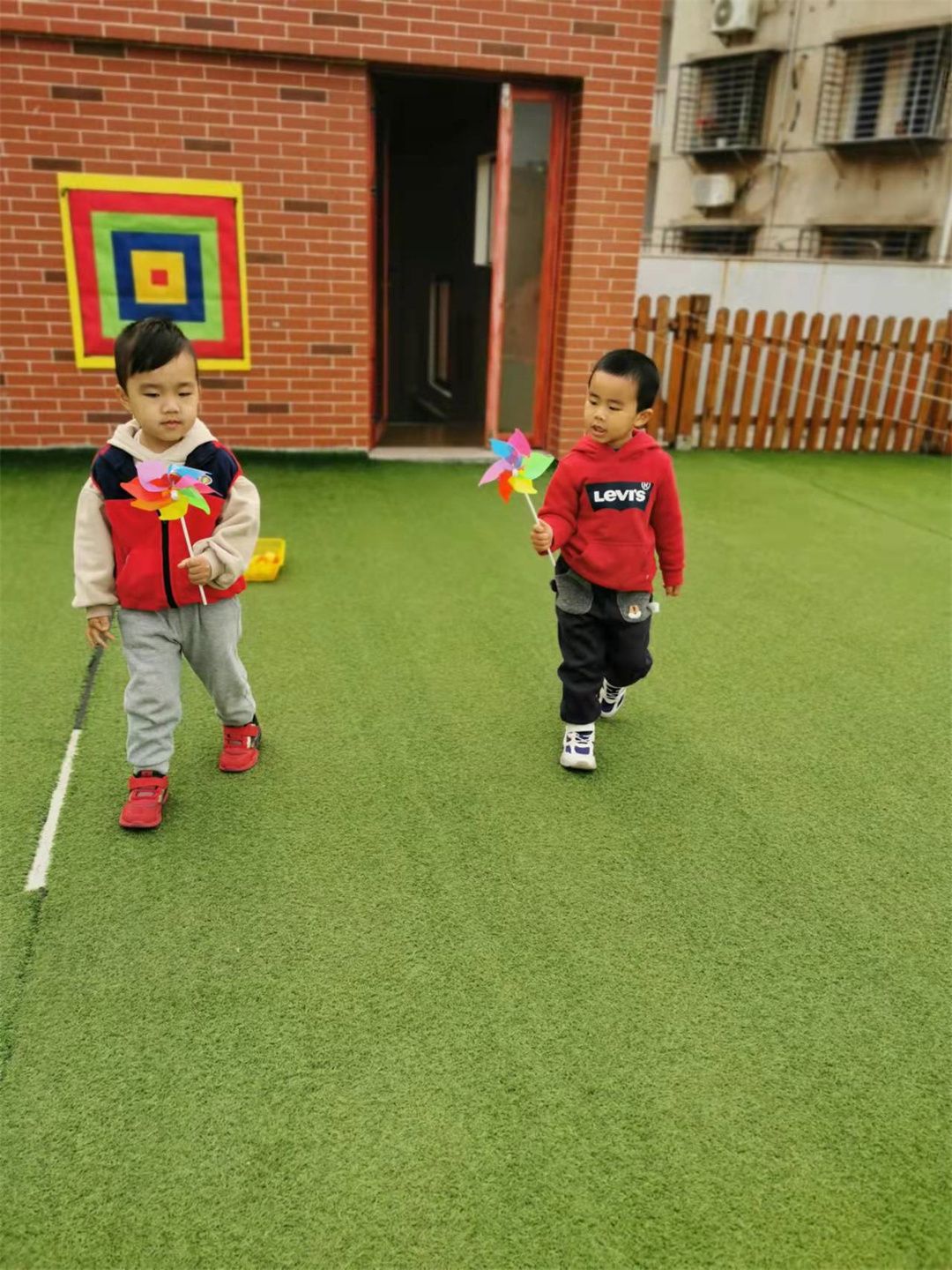 小风车随着风儿转起来啦!