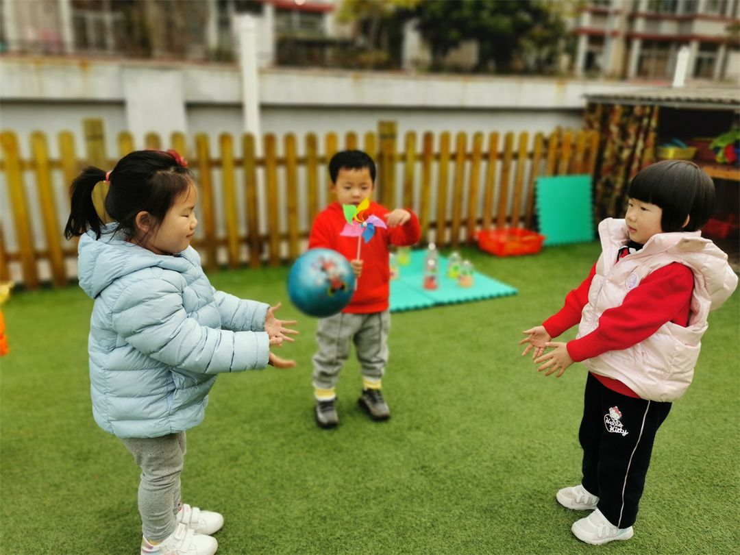 小伙伴们一起在玩抛接球的游戏,看看谁接球最厉害哦!
