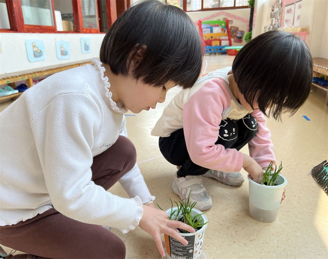 瞧!我们在种蒜苗呢!