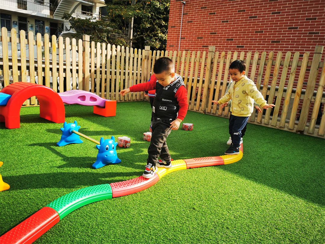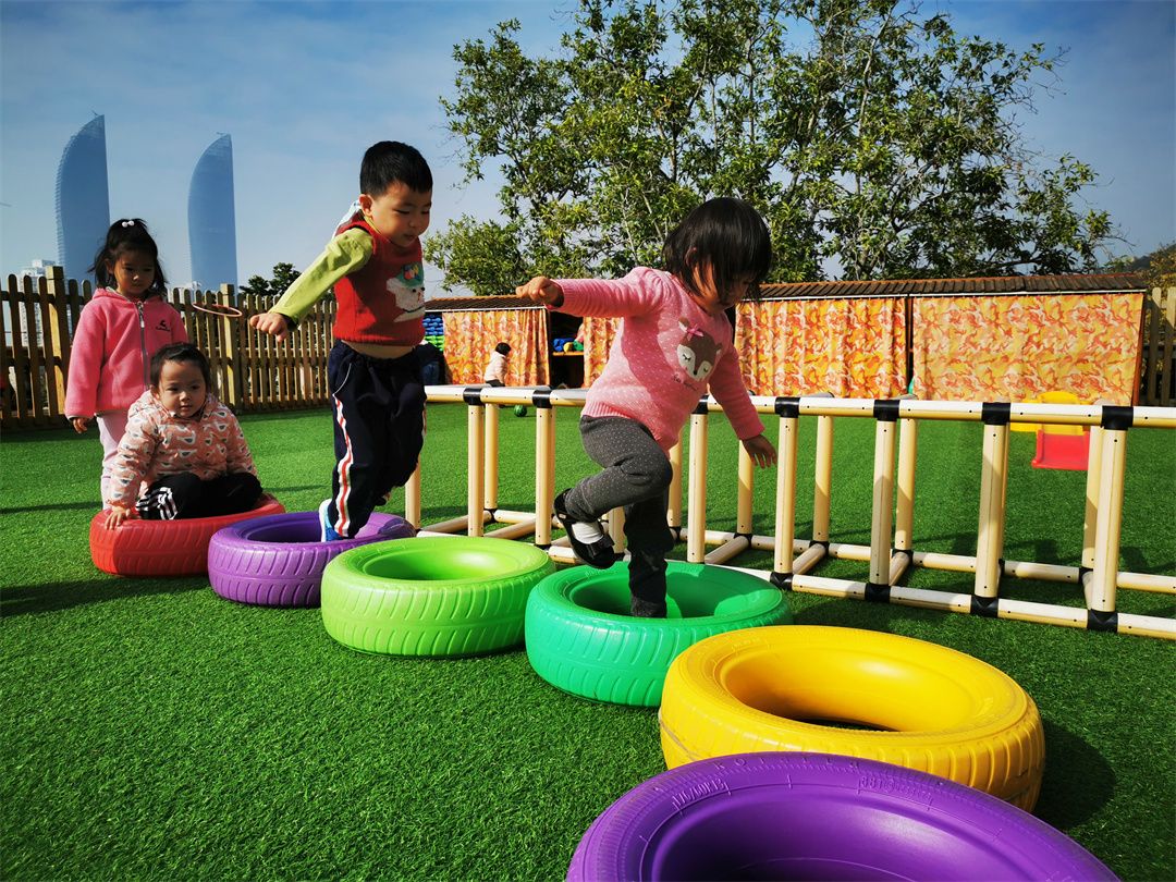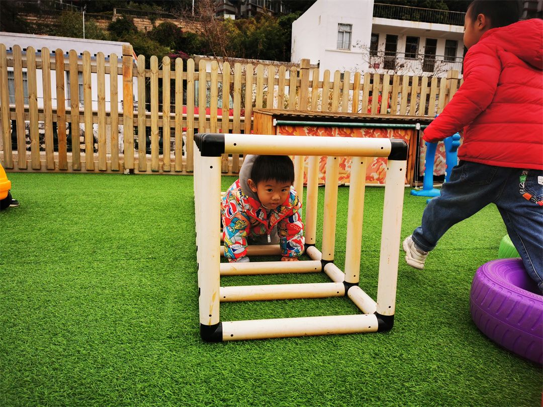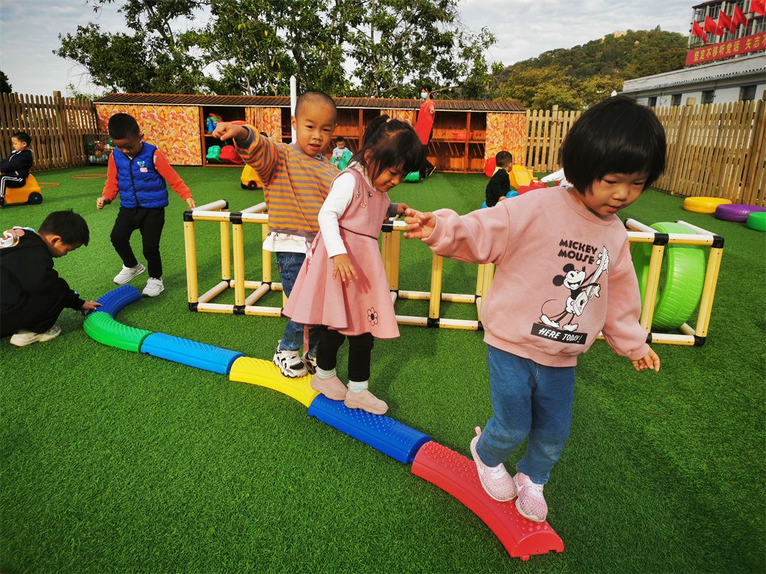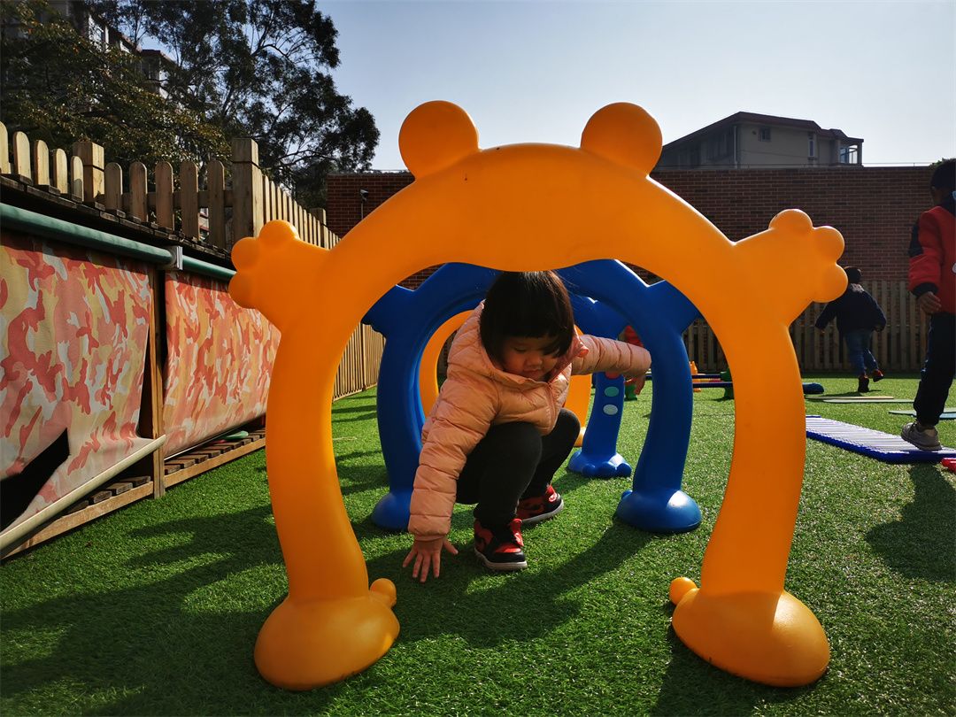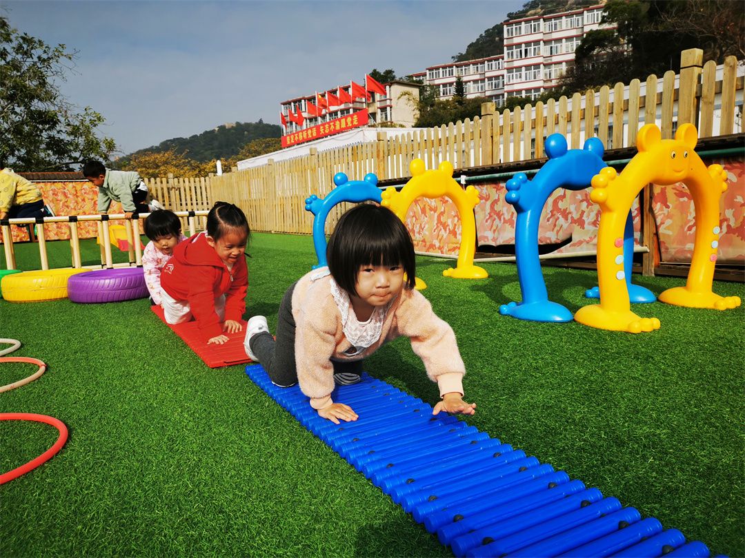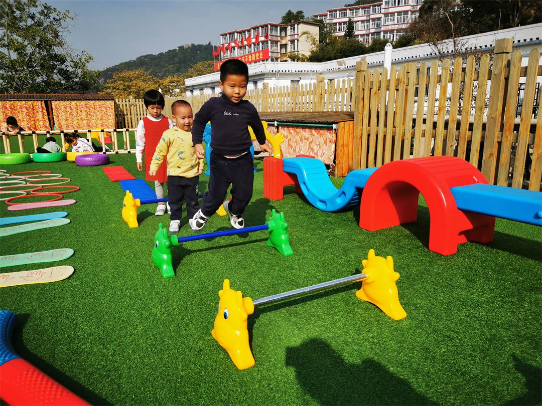 快看,操场的那边的体能循环区,走平衡、跨越跳、爬爬乐、钻山洞、青蛙跳、攀爬架……一道道关卡给予了我们无限的动力!
