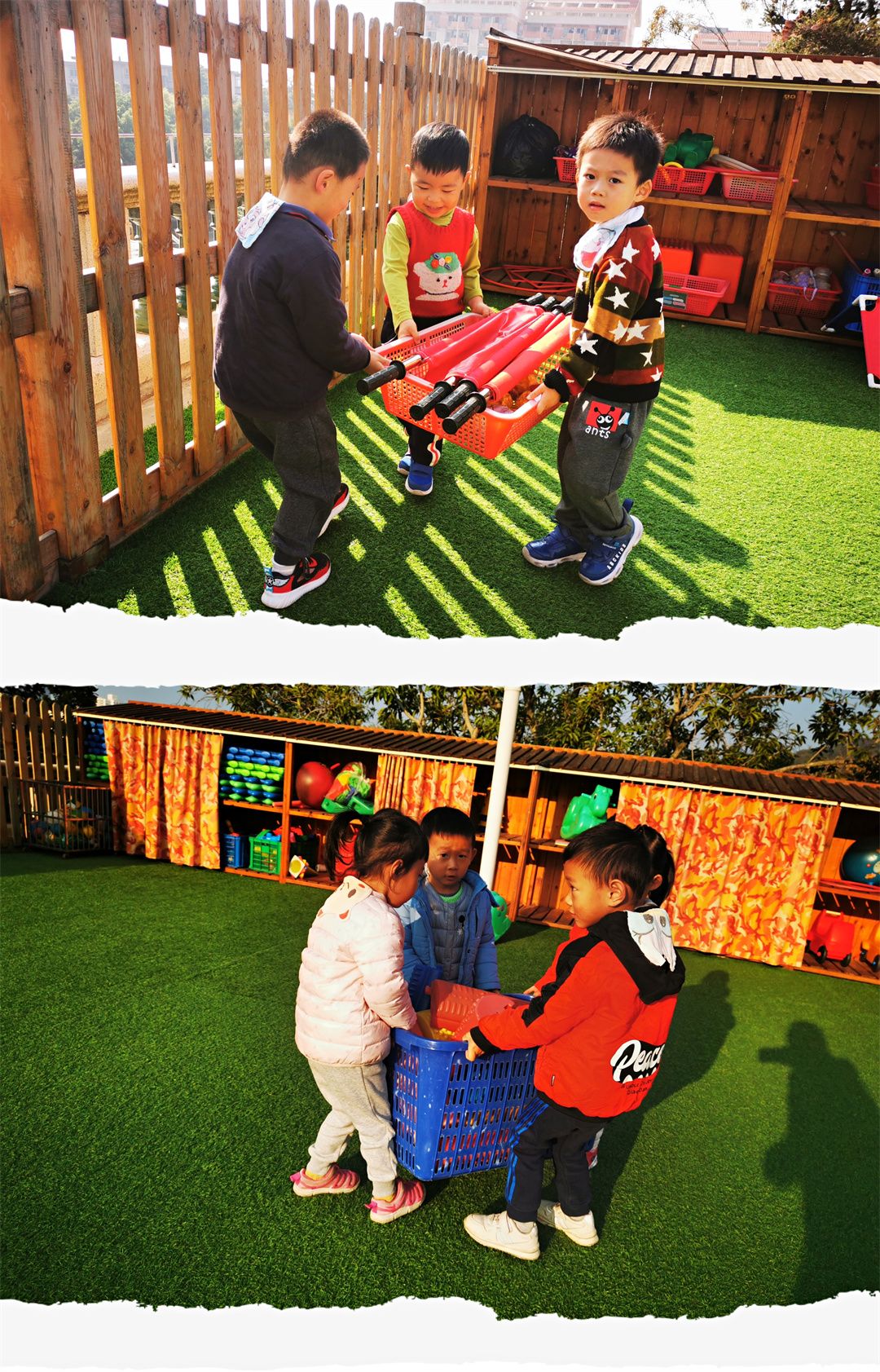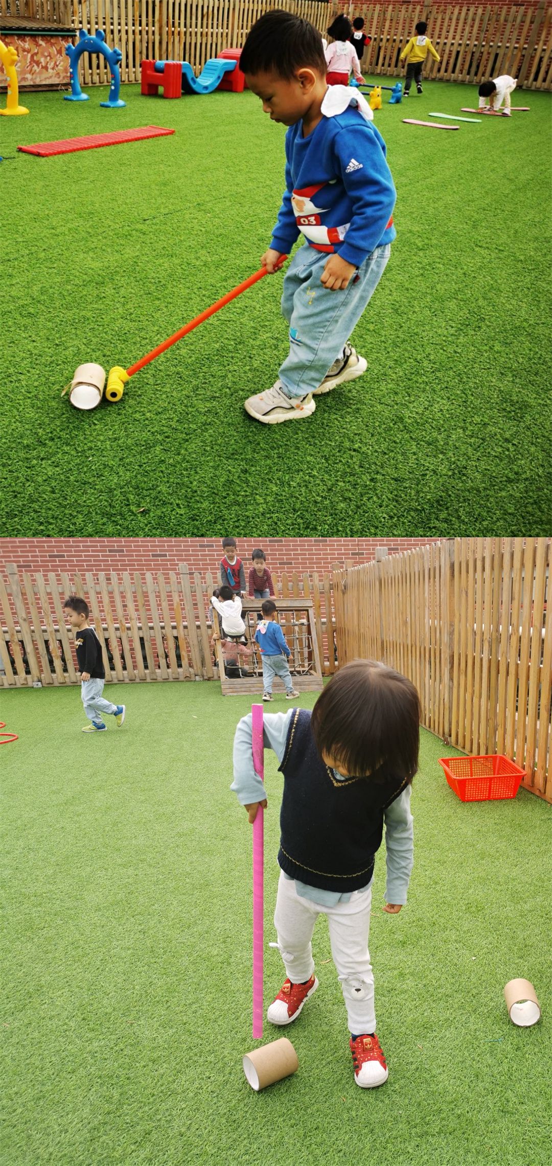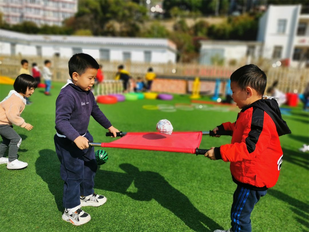 热身运动后,大家一起动手布置起来,游戏场地我做主!