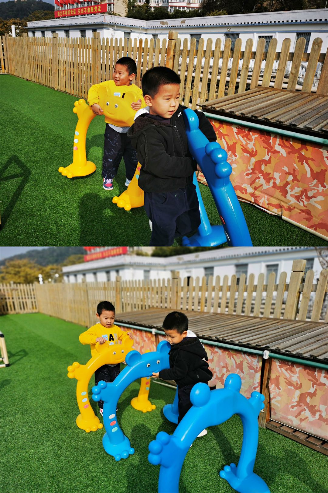 “骑上小木马,一起摇摇摇。”