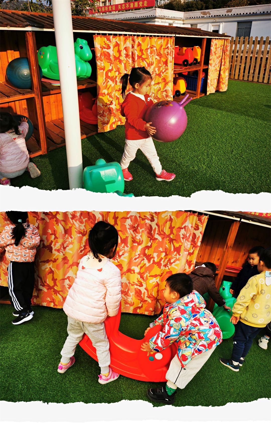 送走了炫彩的秋天,迎来了冬日的暖阳,“吽、牛牛牛,吽、牛牛牛,大河弯弯向东流……我们是中国的小孩,就是这么牛!”伴随着轻松愉悦的音乐,瞧,小一班的宝贝们开启了快乐的晨间户外活动之旅……