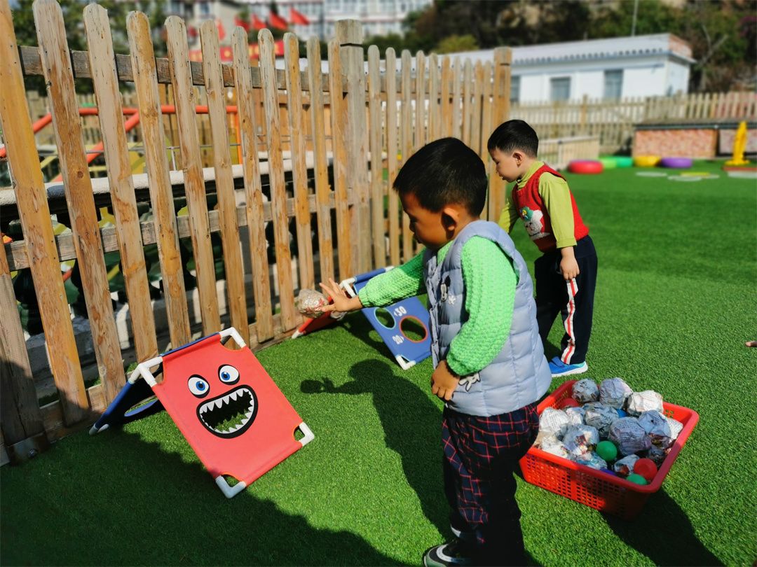 “小怪兽饿了,我们请它吃‘馒头’”,“看我的,哈哈,投进了!”