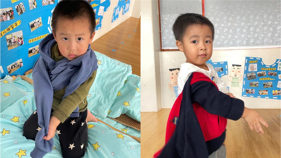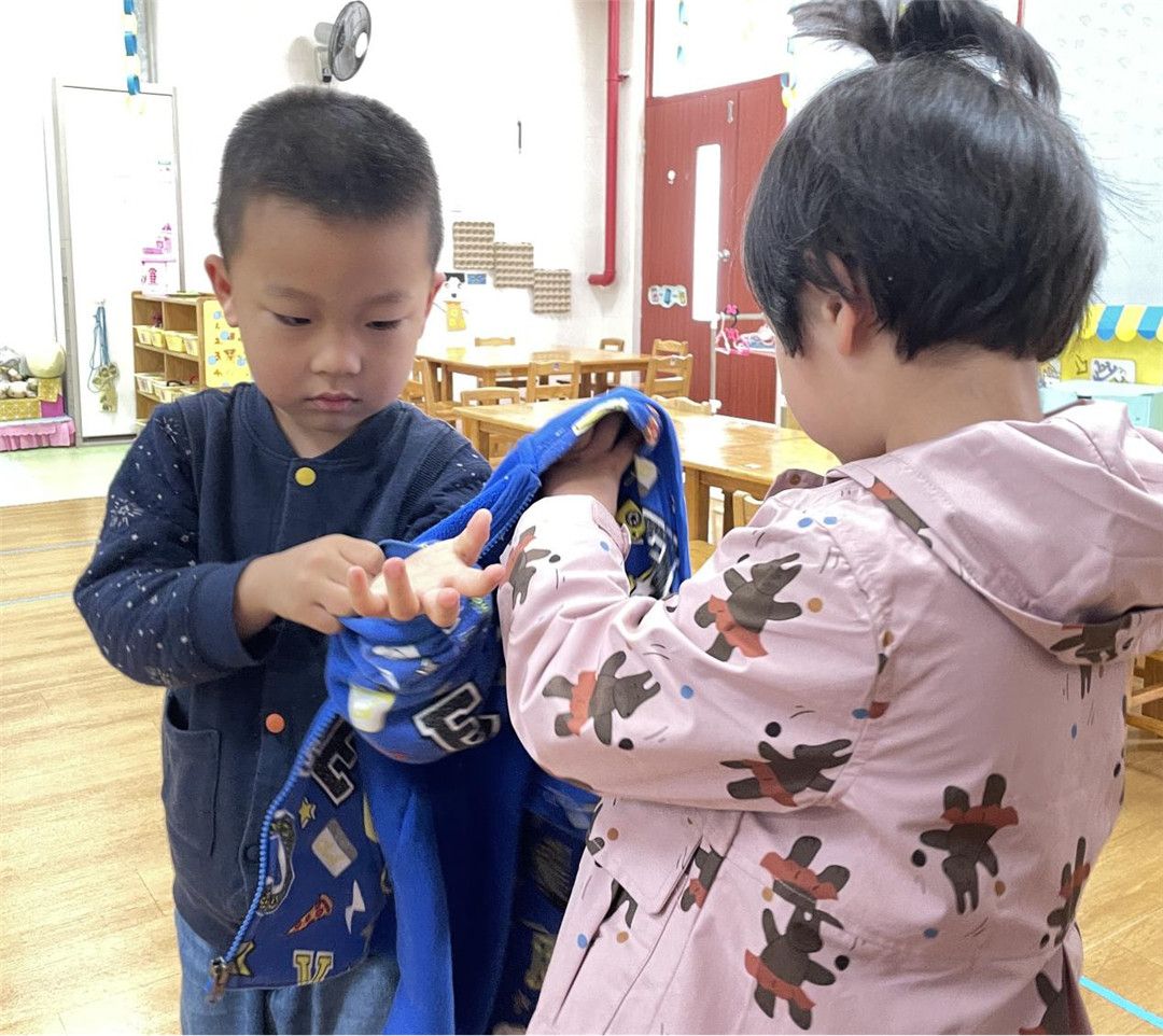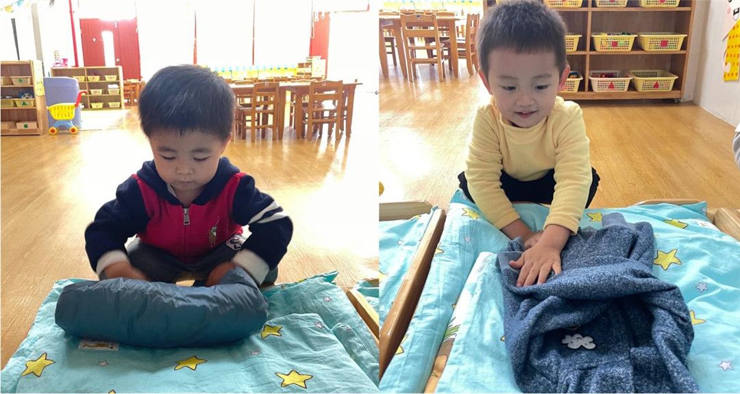 宝贝们虽然入园不到一学期,但他们已学会了“叠”和“穿”的本领。如今的他们进步飞速,一个个变成了“叠、穿”小达人啦!让我们一起给宝贝们点一个大大的赞吧!