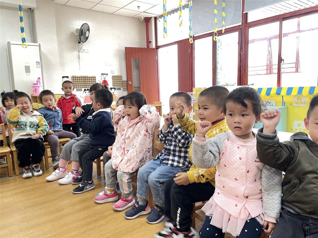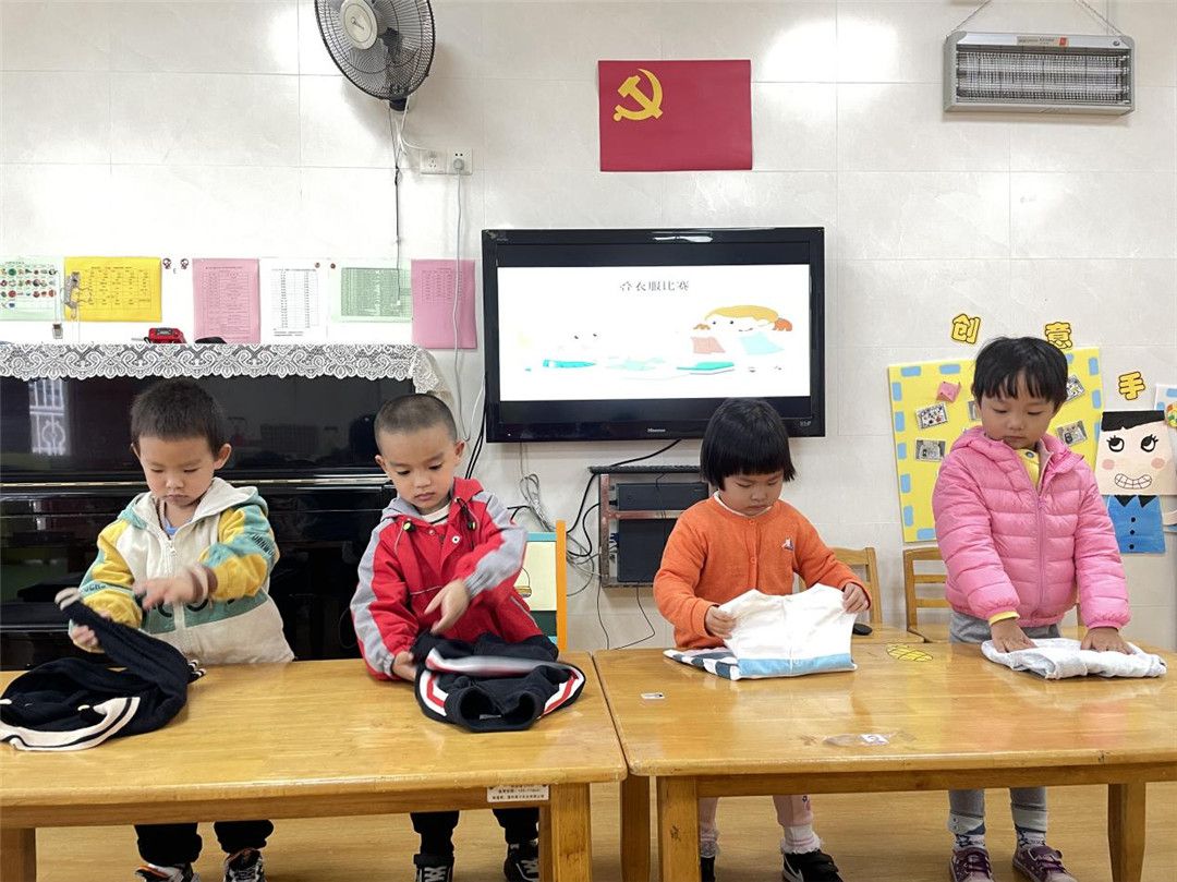 叠、穿比赛开始啦!小朋友们又紧张又兴奋,我们一起为他们加油助威吧!