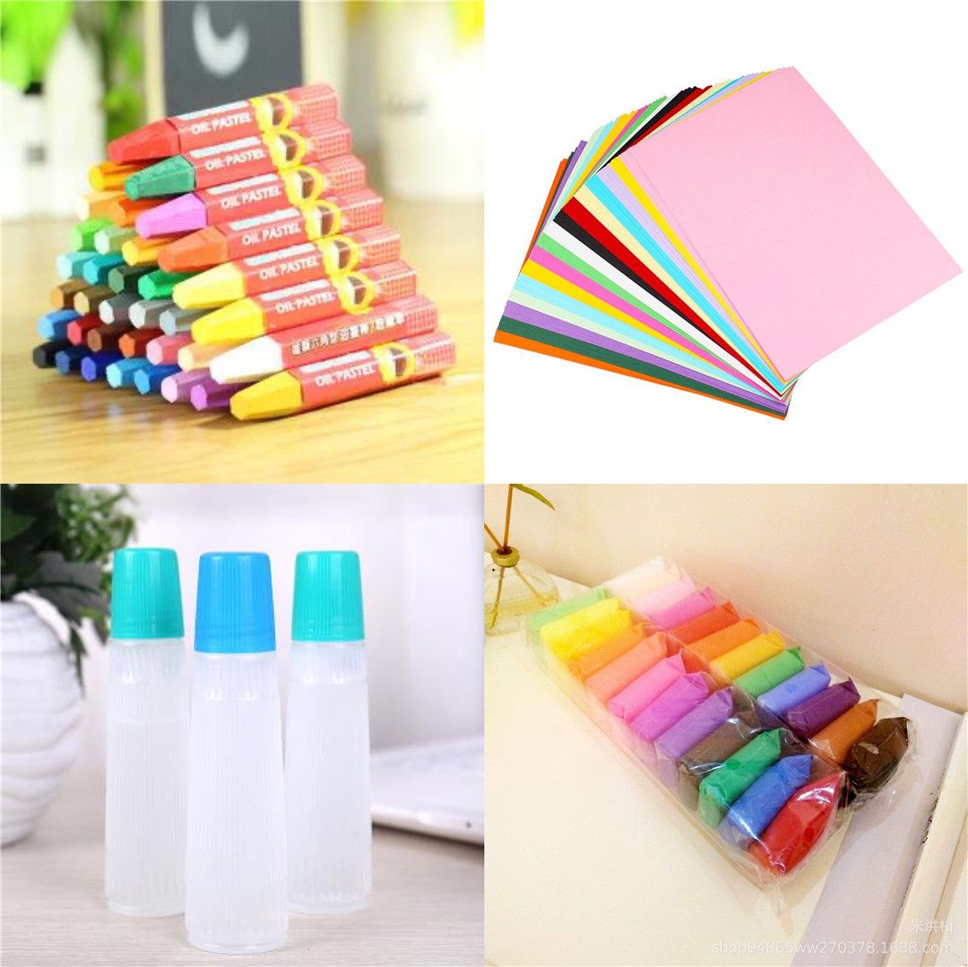 提前帮小朋友们准备画有小羊的纸,还有各种各样的材料:油画棒、超轻黏土、彩色纸、胶水、棉签等...