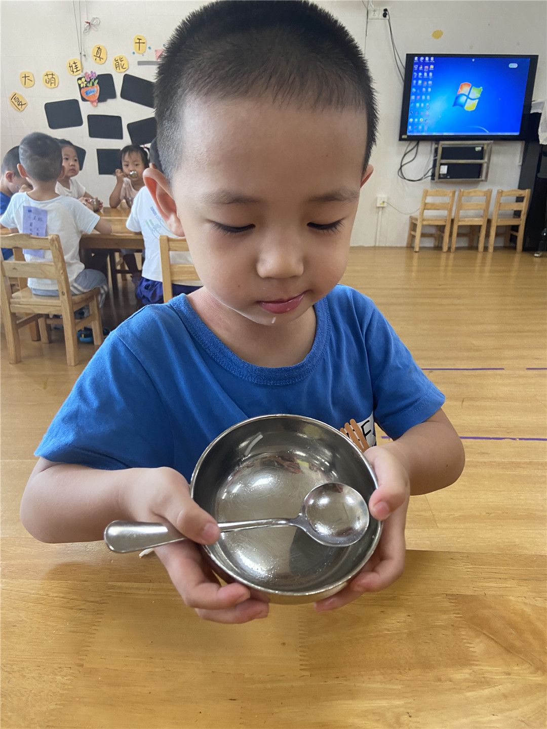 小小班的时候我还要老师喂,现在的我可以自己吃饭,吃的还特别的快呢。